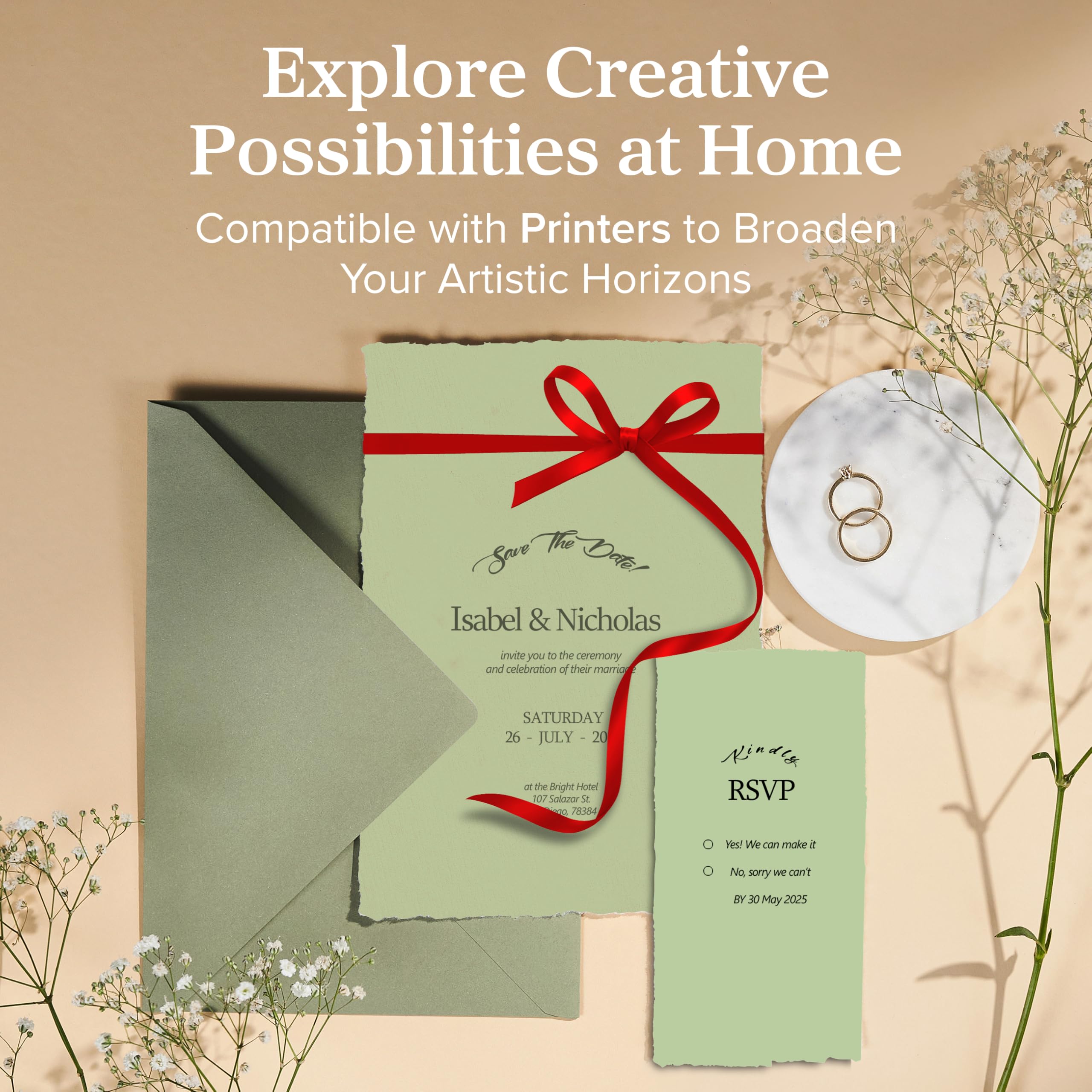 [Perfect for Creative Projects]: This versatile paper is ideal for a wide range of artistic and craft projects. Use it for creating unique wedding invitations, thank-you notes, greeting cards, personalized stationery, or for experimenting with various art forms such as calligraphy, scrapbooking, watercolor, and mixed media. Its elegant deckled edges and soft texture provide a timeless, sophisticated touch to all your creative endeavors. Whether for Christmas cards, thank you cards, Save the Date, or painting, this paper adds a unique and vintage flair to all your projects
