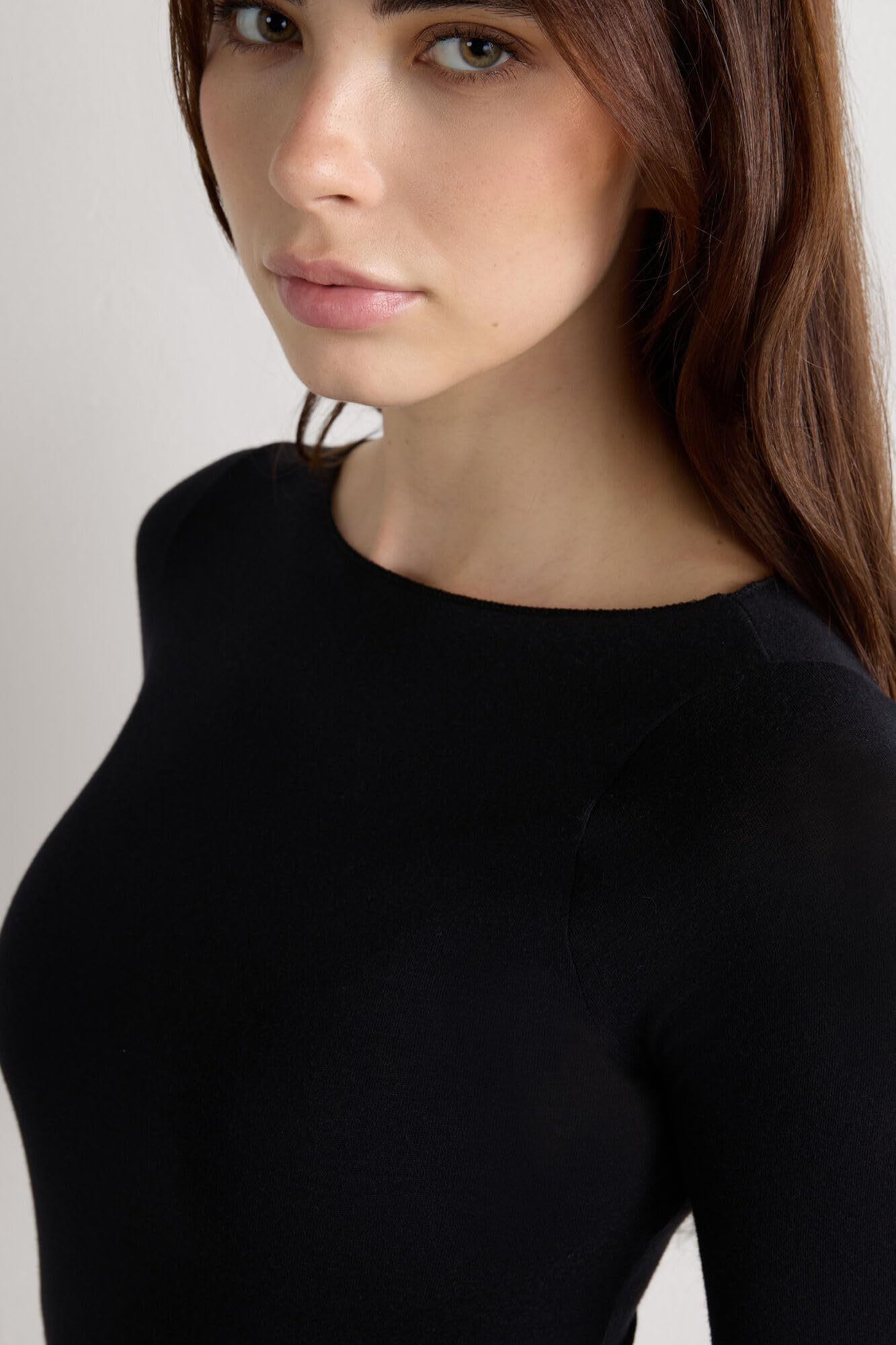 Description Experience the perfect blend of luxury and versatility with our cashmere boat neck top. Crafted from ultralight modal and cashmere, this sheer boat neck top offers an incredibly soft and breathable feel, making it ideal for layering or wearing on its own. The elegant boat neckline frames the shoulders beautifully, adding sophistication to any outfit. The ultralight material’s sheer nature gives it a delicate and refined look, perfect for creating effortlessly chic ensembles. We recommend pairing it with our Ultralight Microfiber Top for added coverage while maintaining a sleek silhouette. Designed for a slim fit, the cashmere boatneck top offers gentle stretch for comfort while flattering your figure. Ideal for transitional seasons, this lightweight cashmere boat neck shirt provides warmth without bulk, making it a wardrobe essential. Available in versatile colors, it’s perfect for styling with high-waisted trousers or layering under blazers for an understated yet daring look.