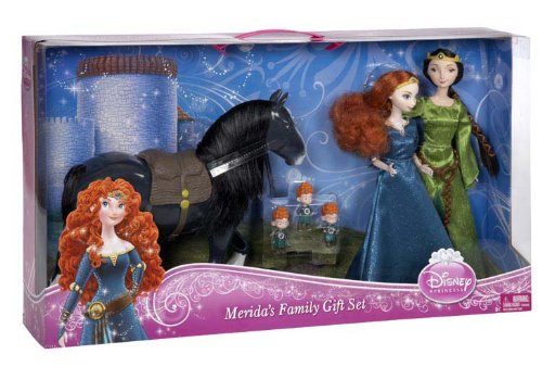 From the Manufacturer Disney Brave Big Box Story Set: Brave tells the tale of the spirited Merida and her adventures in the Scottish highlands. Featuring key characters from the movie, Merida's Family Gift Set includes a Merida doll in a beautiful dress; her mother, the elegant Queen Elinor; her adorable triplet brothers; and Merida's trusted confidante, Angus the horse. Girls will love bringing their favorite movie moments to life with so many special characters.