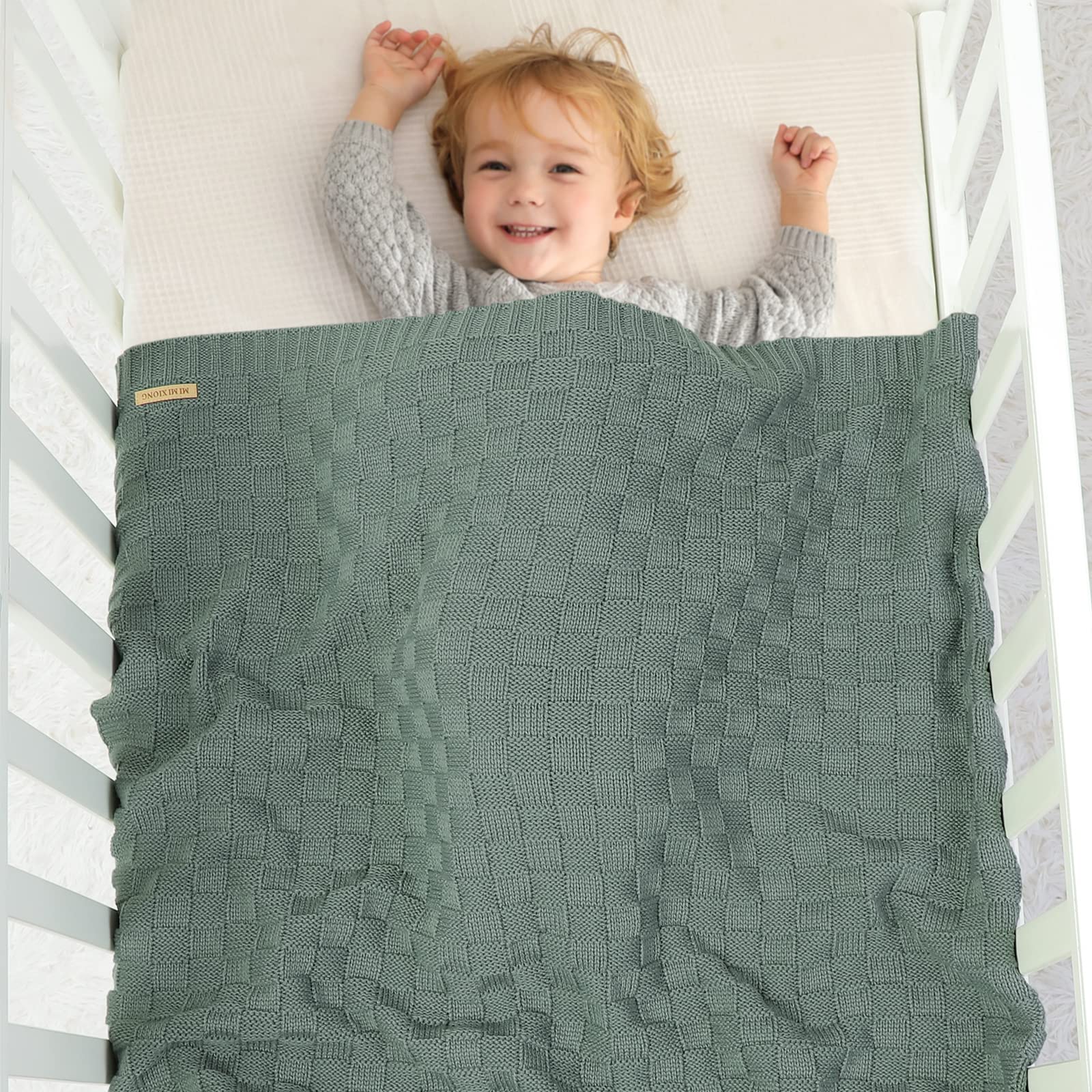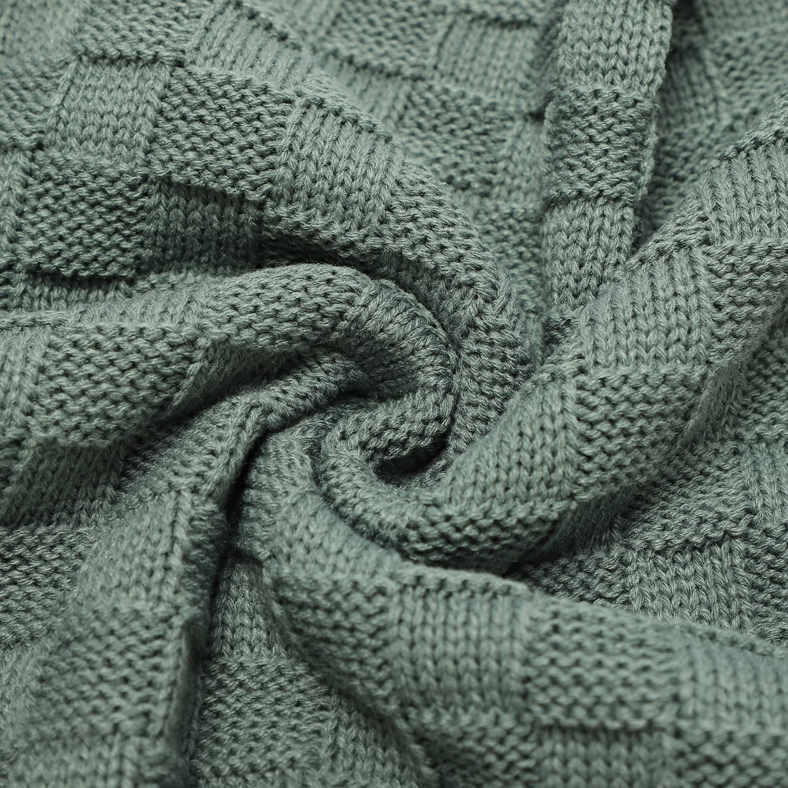 Timeless Cable Pattern & Colors: Delight in the beauty of the checker-pattern cable knit and the 11 delightful colors(light green, dark green, dusty blue, yellow, grey, pink, white, blue, brown, beige, and classic green), adding timeless elegance and childishness to this breathable baby blanket, match any nursery theme or personal style.