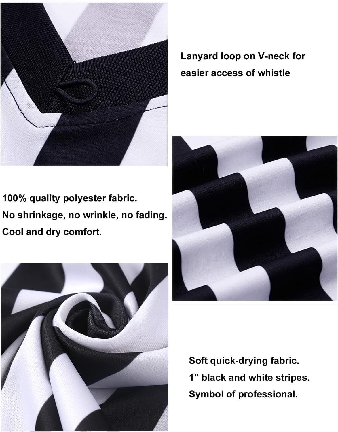 Athletic cut: V-neck collar lanyard loop for securing the whistle, allowing you to make calls with ease, confidence and comfort. Soft ribbed cuffs for smoother movement and comfort. Straight and overcasting stitching to prevent raveling.