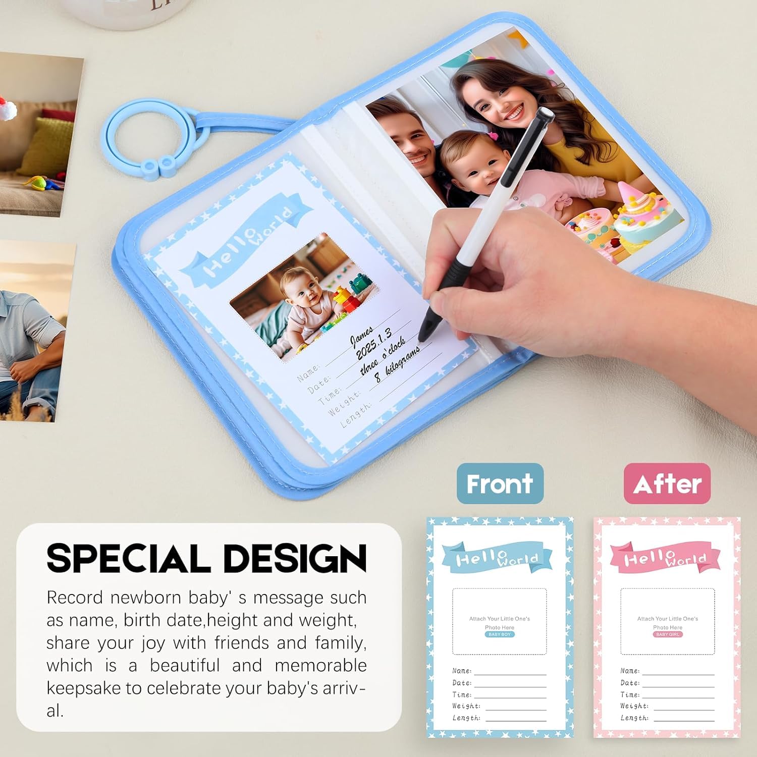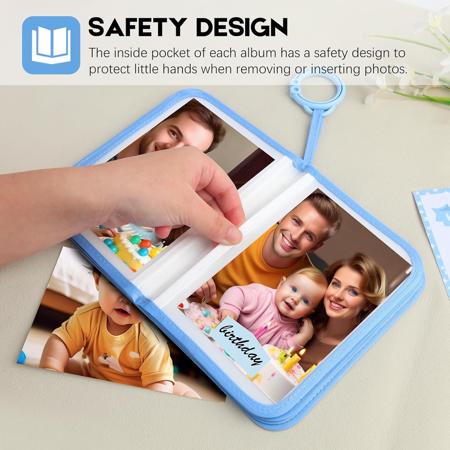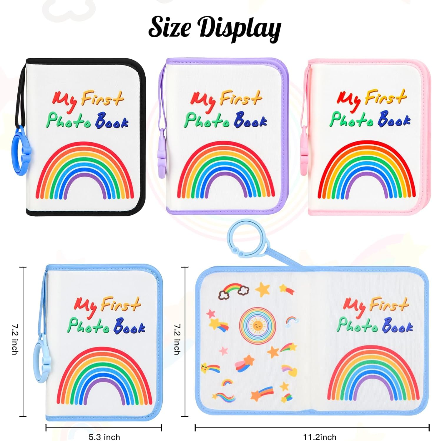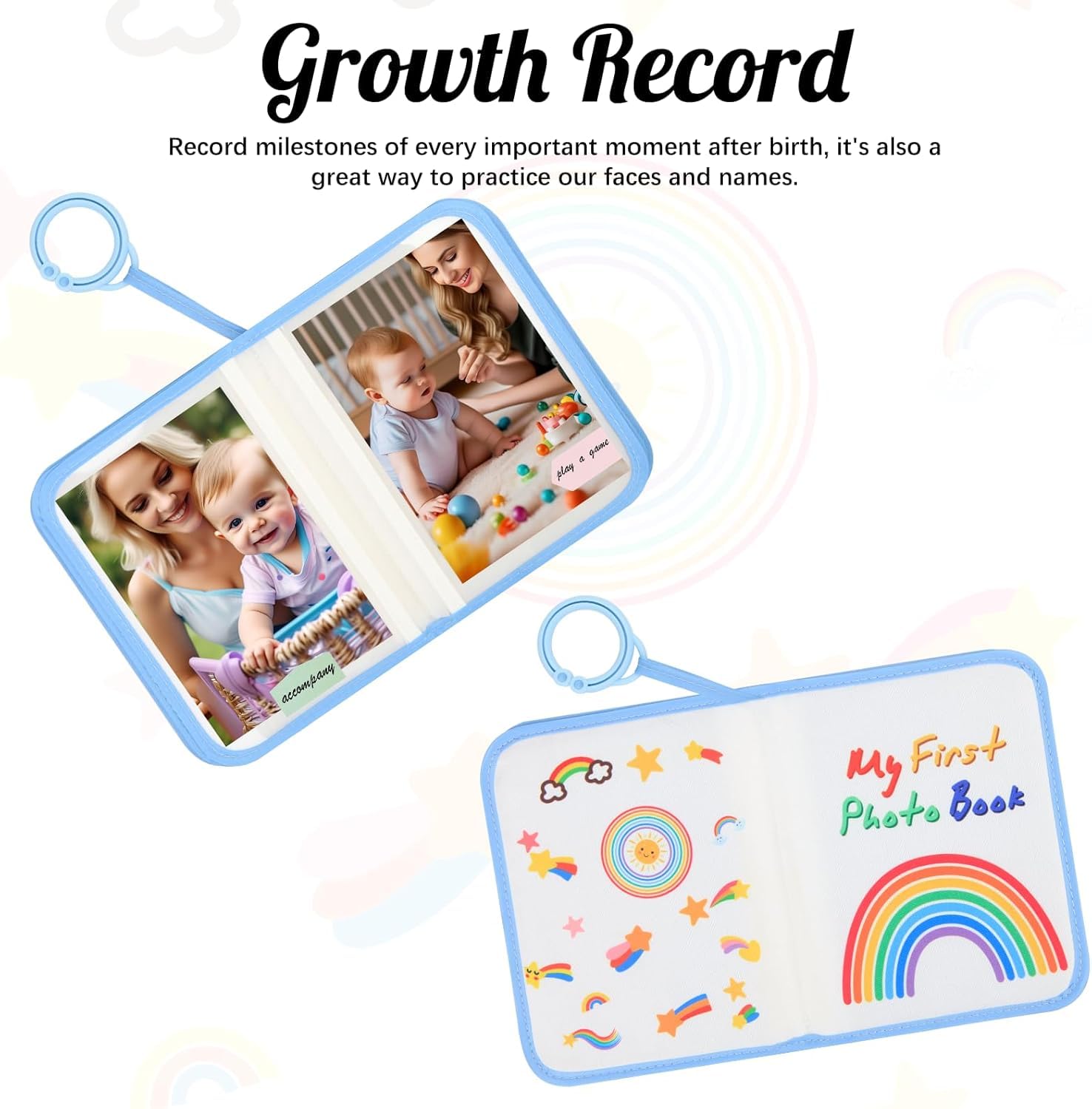 PERFECT SIZE: This small baby photo book is perfect for baby's tiny hands. Holds up to 21 4x6 inch photos. Clear photo pockets, can protect pictures from baby's drool, pictures won't stick to pockets, easy to insert and remove. The star hook can be easily attached to the cot, pram, etc. Child safety mirror on one side in the middle of the last page of the album.