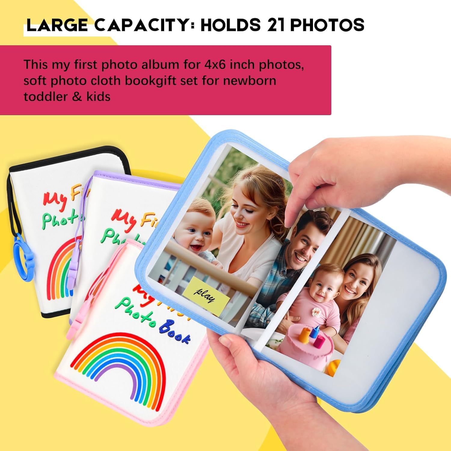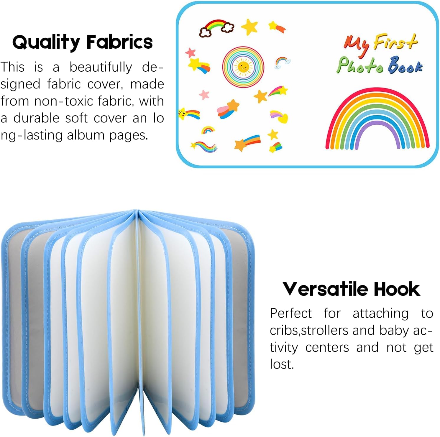 HIGH QUALITY FABRIC MATERIAL: This soft photo book is made from child safe and environmentally friendly fabric that is non-toxic and odourless. The cute cover pattern will not fade. The inside photo slots are smooth and odourless. The surface and edges of the family album are covered with a soft cloth, as are the inside pages of the album, very safe for babies.