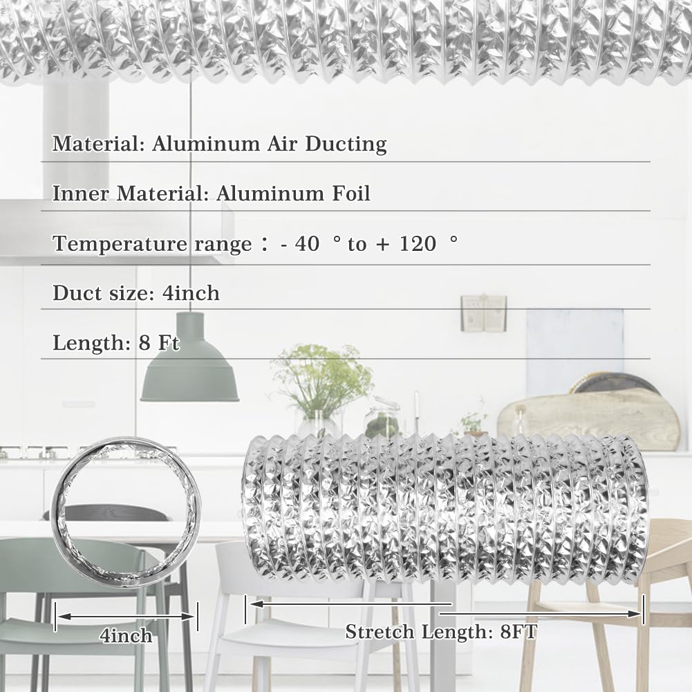WIDELY USED: The flexible dryer vent hose suits HVAC system. It will move and deliver air in Kitchens (cooking exhaust), Green Houses and Grow Rooms (Air Circulation, Intake, Exhaust and Light Fixture Cooling), Bathrooms (Smell and Moisture Exhaust), Dryer Rooms, Grow Tents and other applications etc.