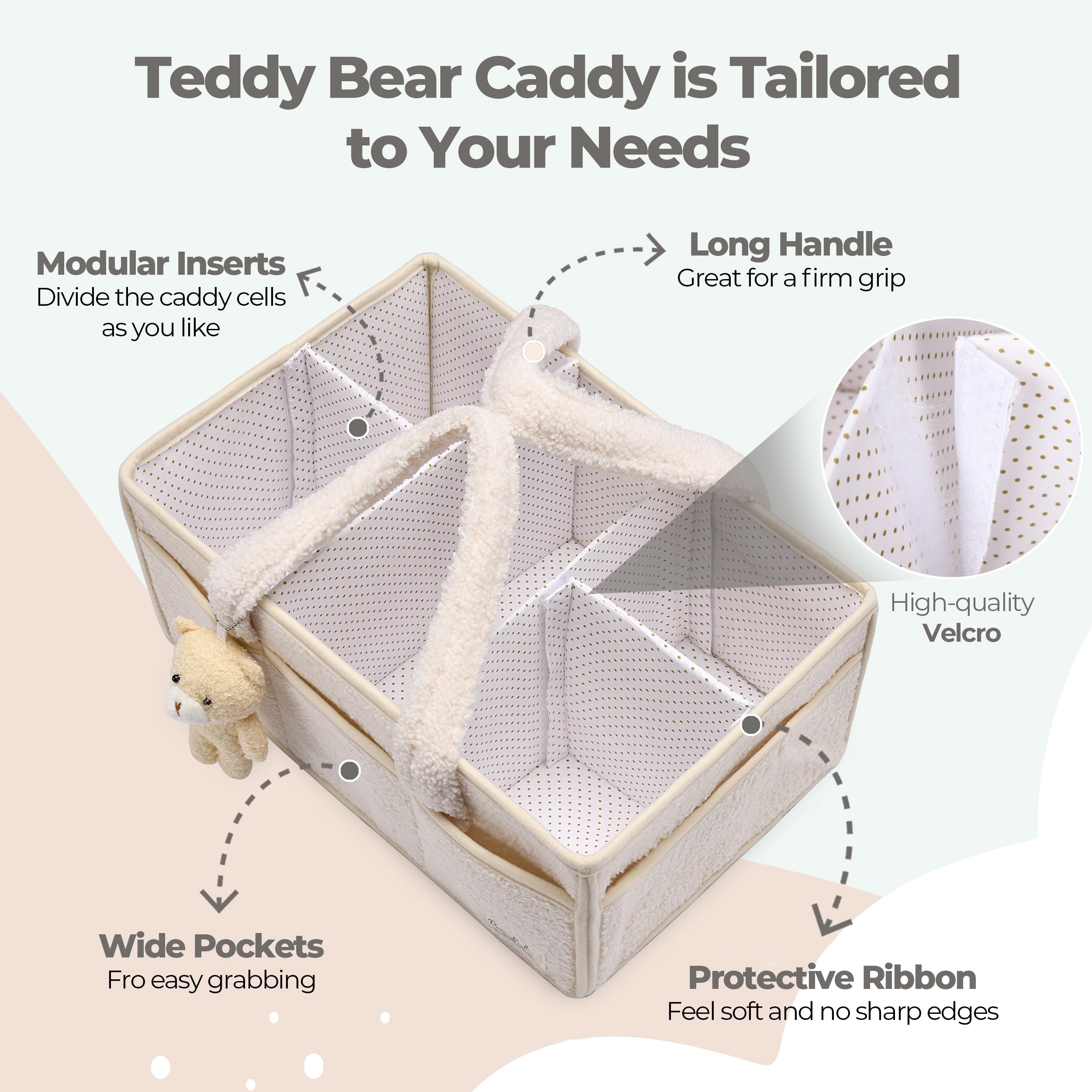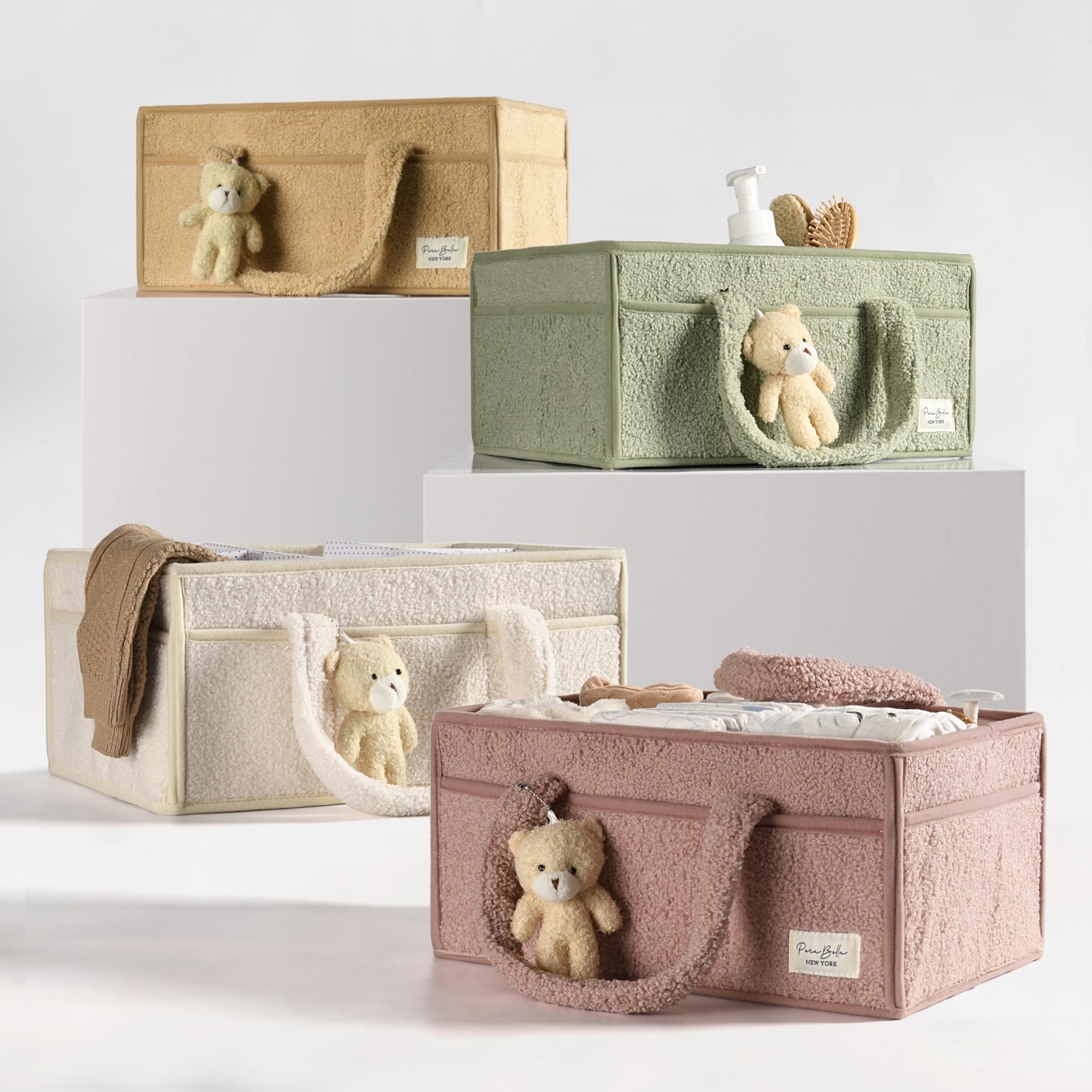 BONUS TEDDY BEAR CHARM AND LUXURIOUS PLUSH SHERPA EXTERIOR : Crafted with a premium plush sherpa exterior, our Baby Diaper Caddy feels as cozy as it looks. Each caddy comes with an adorable teddy bear charm, adding a touch of delight. It's a small detail that makes a big impression, perfect for gifting