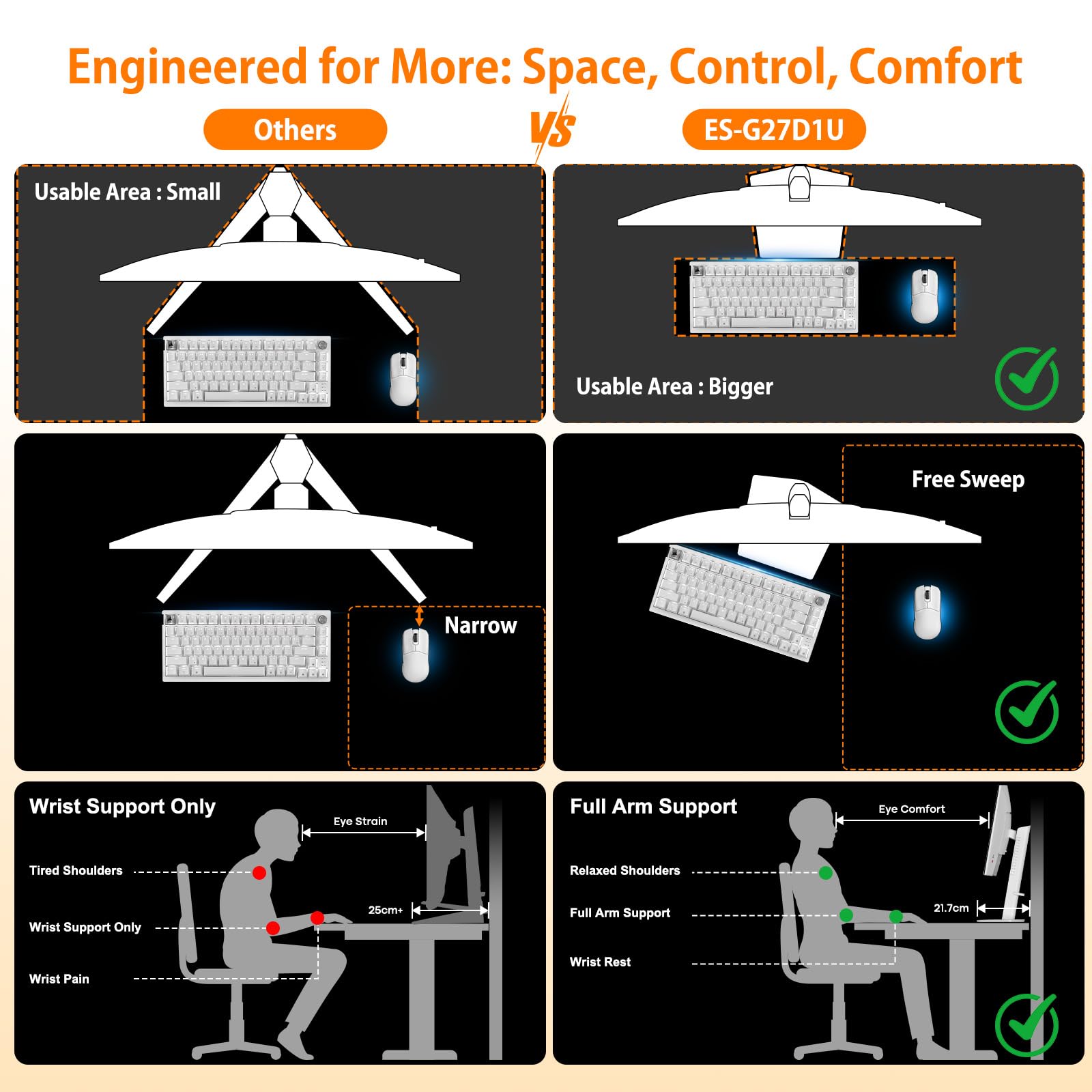 Ergonomic Stand: Pivot/Swivel/Height:-90°~+90°/L25°~R25°/0~130mm丨Tilt :-5°~20°(+/-2°)丨VESA Compatible (100x100mm)