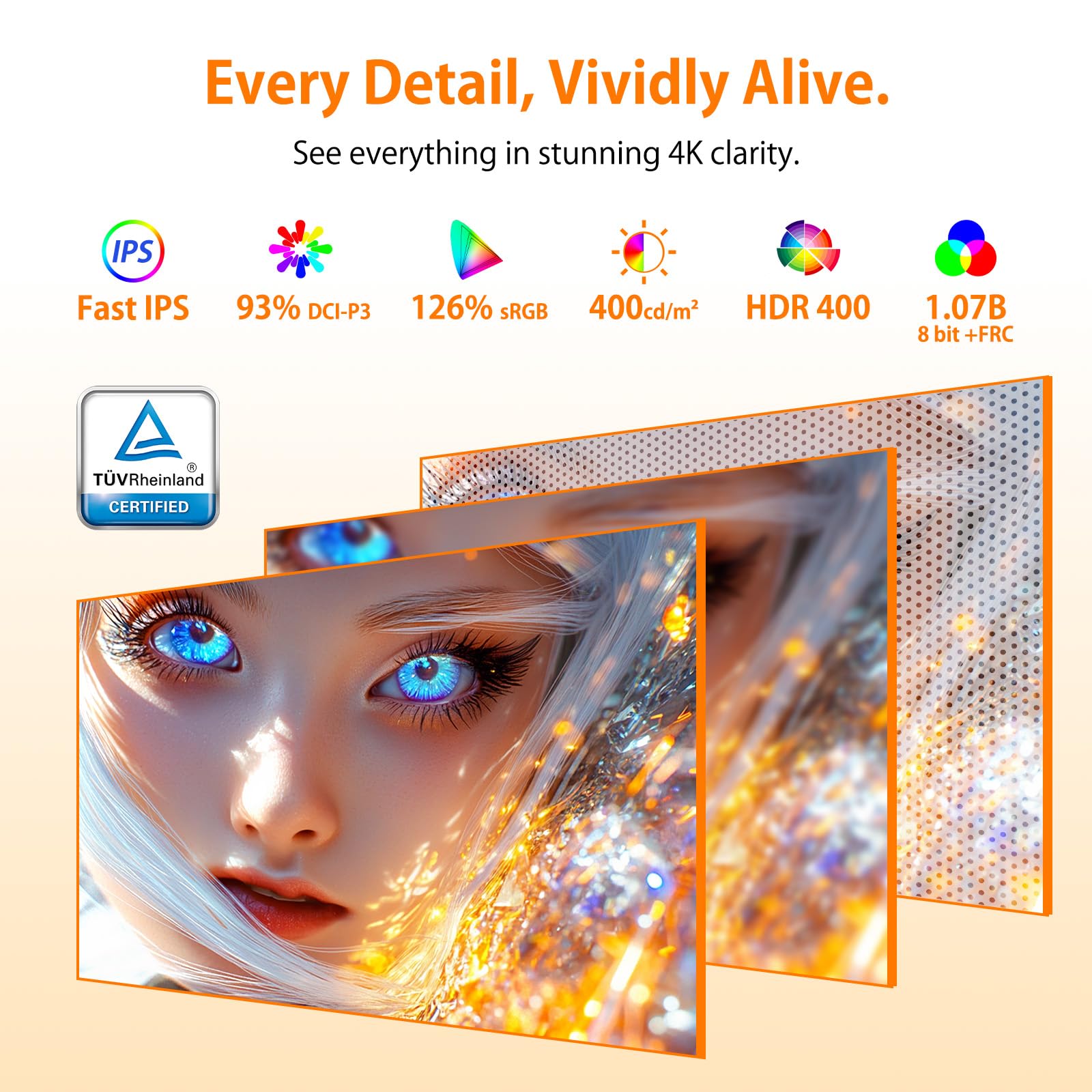 Suplendid Colors: Fast IPS丨400Nits Brightness丨AI PQ丨DCI-P3 93%丨sRGB 126%丨HDR400丨178°V/H Viewing Angle丨AI DBL Eye Care Technology丨Anti-Flickeromputer
