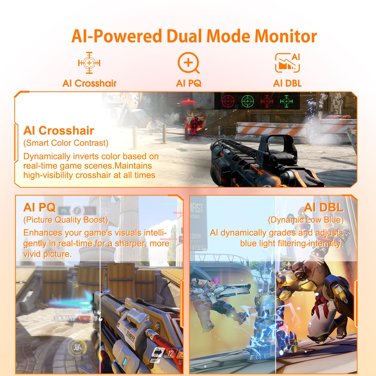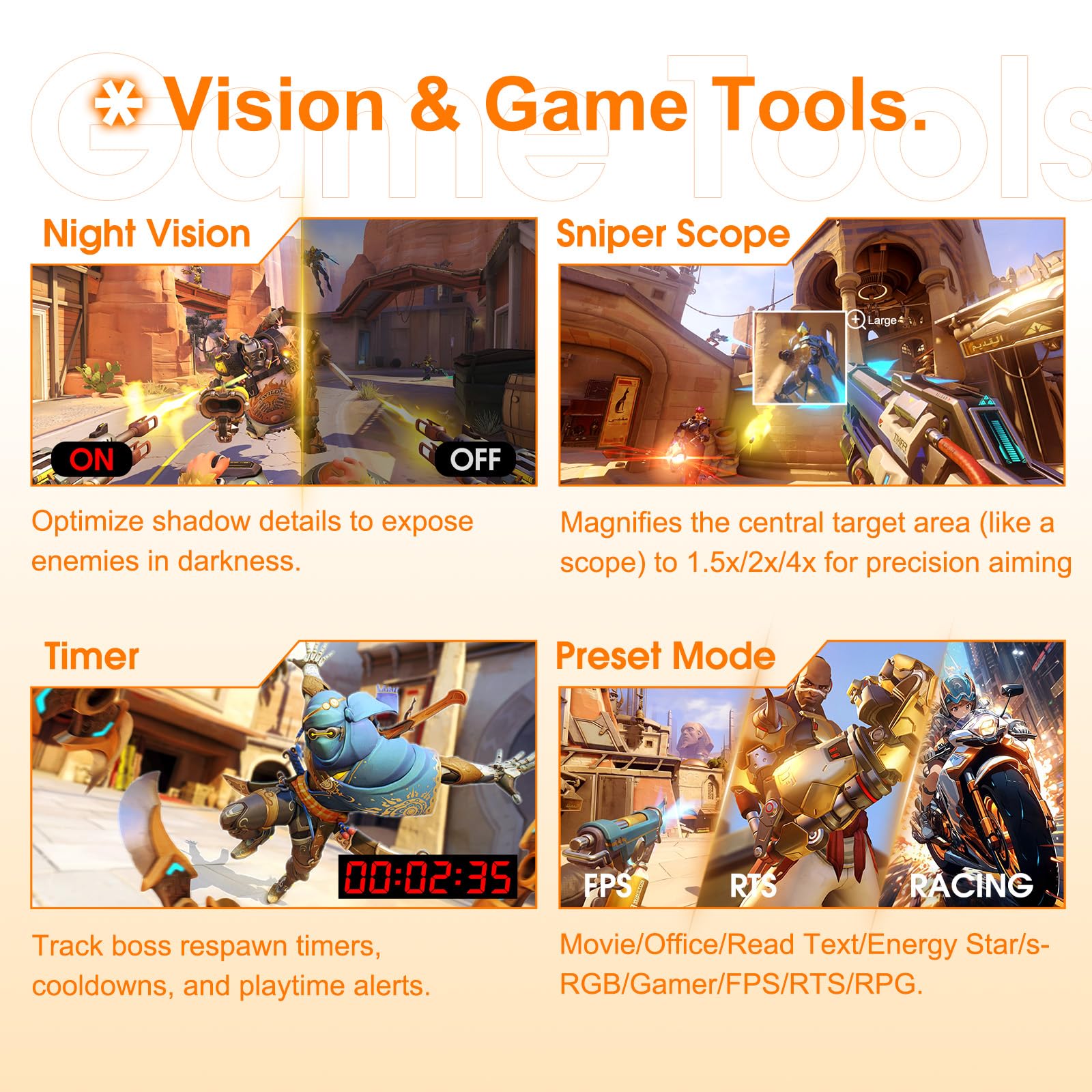 Performance: MPRT 1ms Response Time丨FreeSync Premium丨AI Crosshair丨Sniper Scope丨Night Vision丨RACING/RTS Game Mode