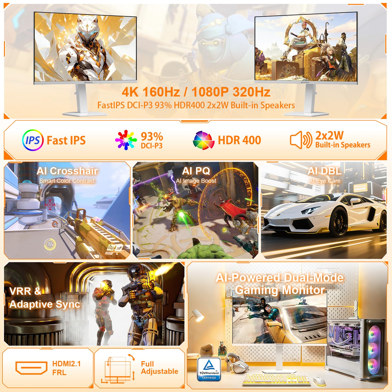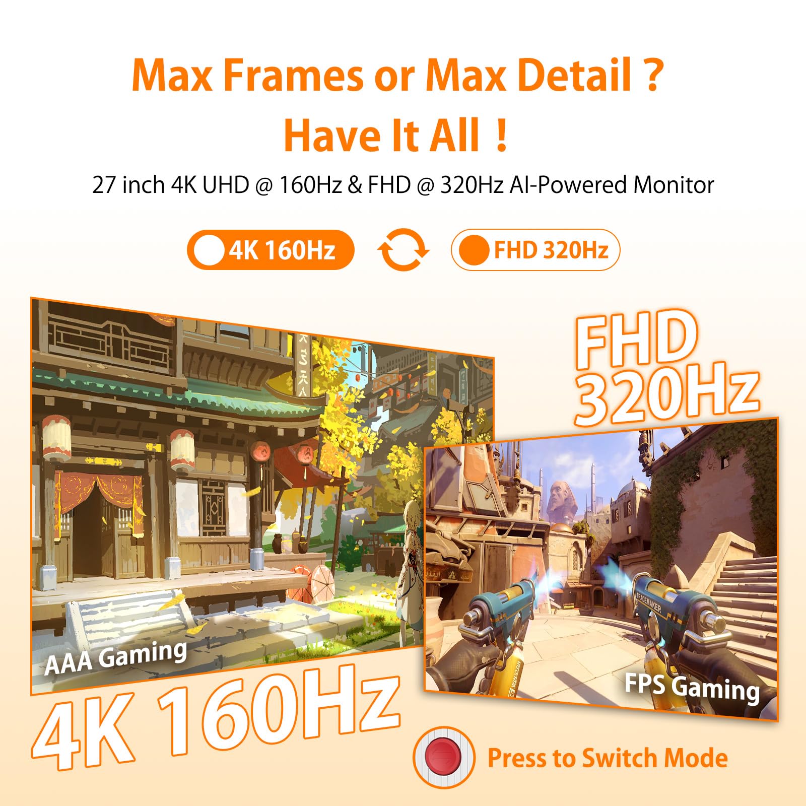 ⭐SANUI 27" Dual Mode (4K 160Hz/144Hz or FHD 1080p 320Hz) PC Monitor for Gaming & Office