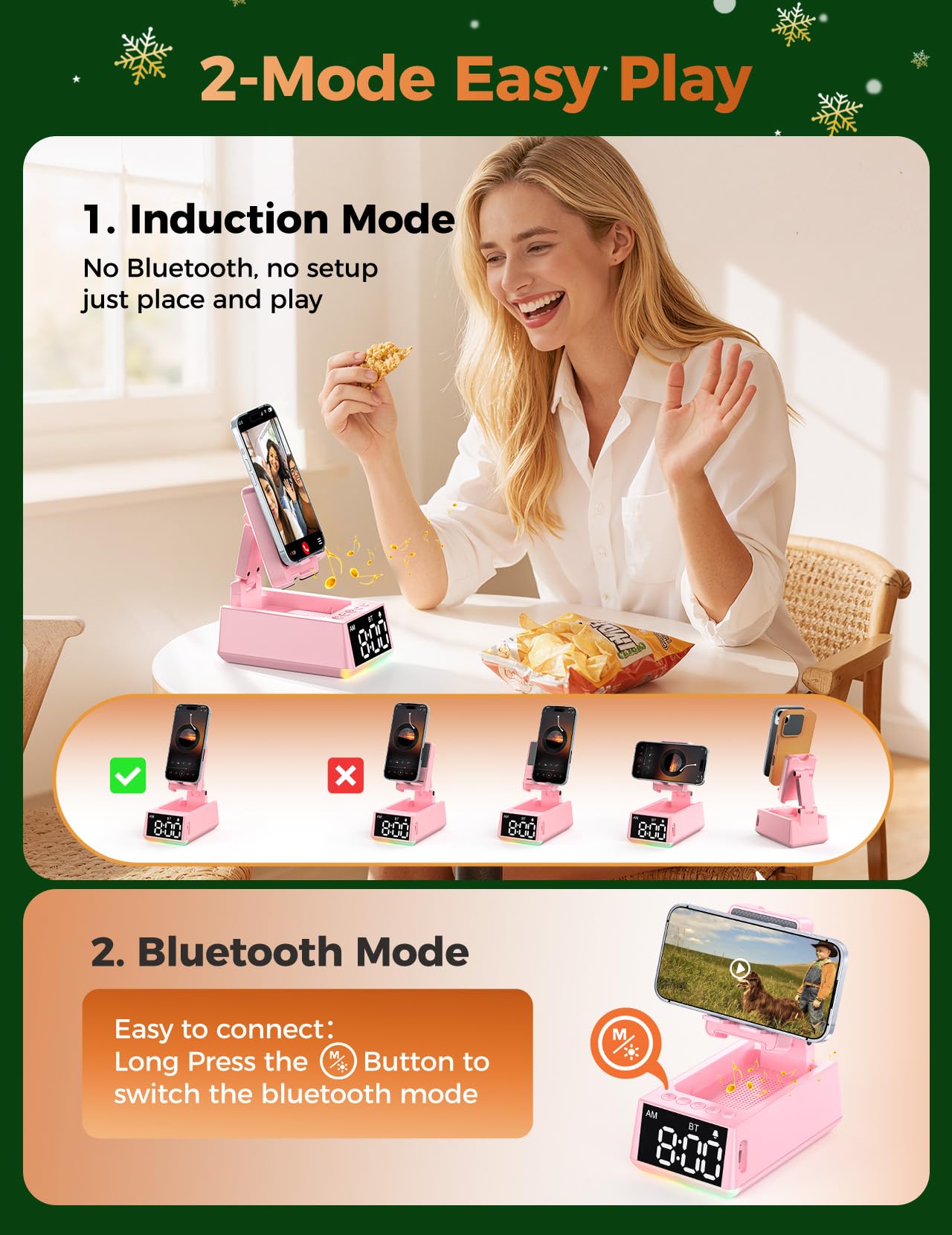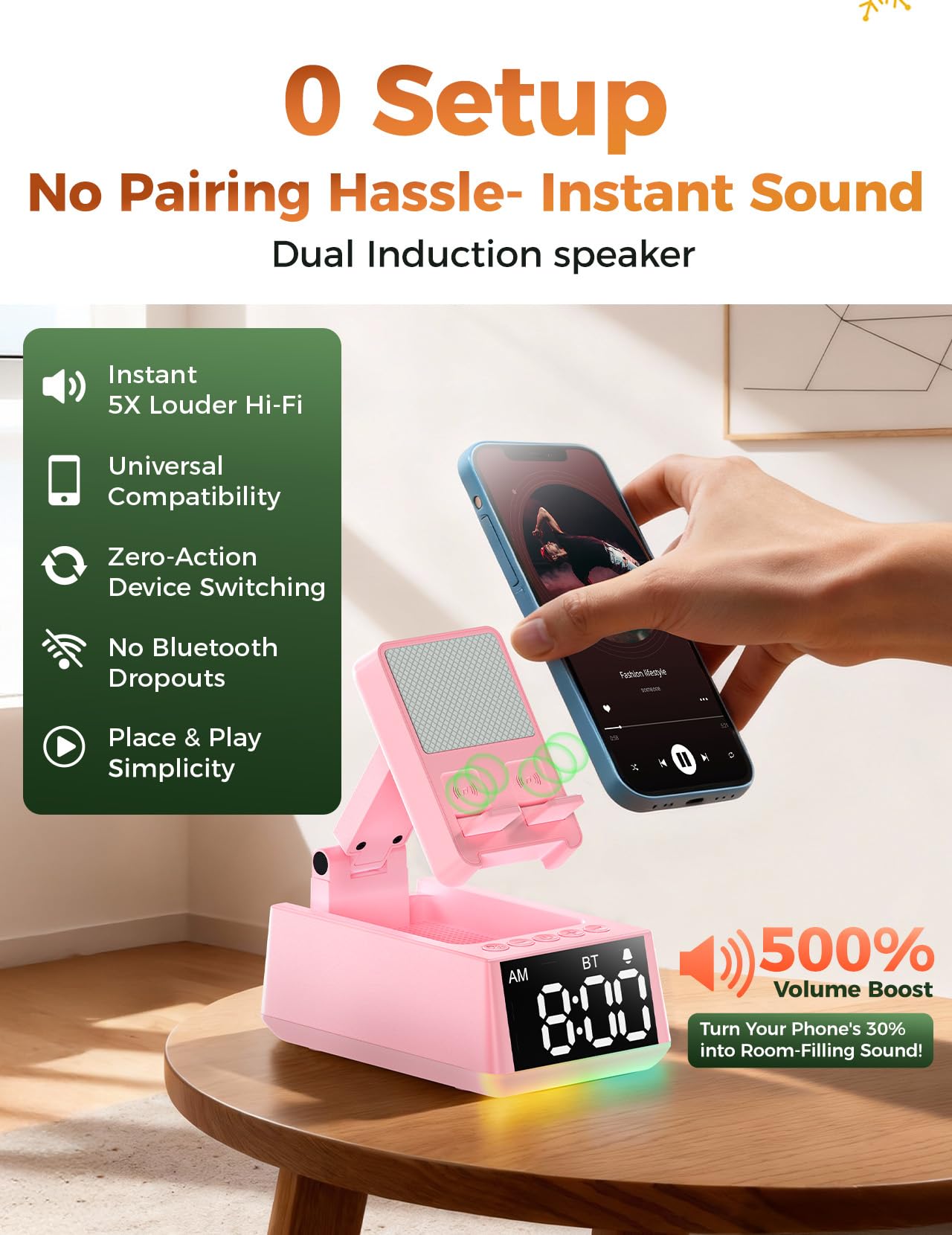Instant Sound, No Setup Needed:Just place the phone on the stand and enjoy louder, clearer sound — no Bluetooth pairing required. Even for parents or non-tech users, it’s easy from the first second【Please NOTE: This device cannot charge cell phones】