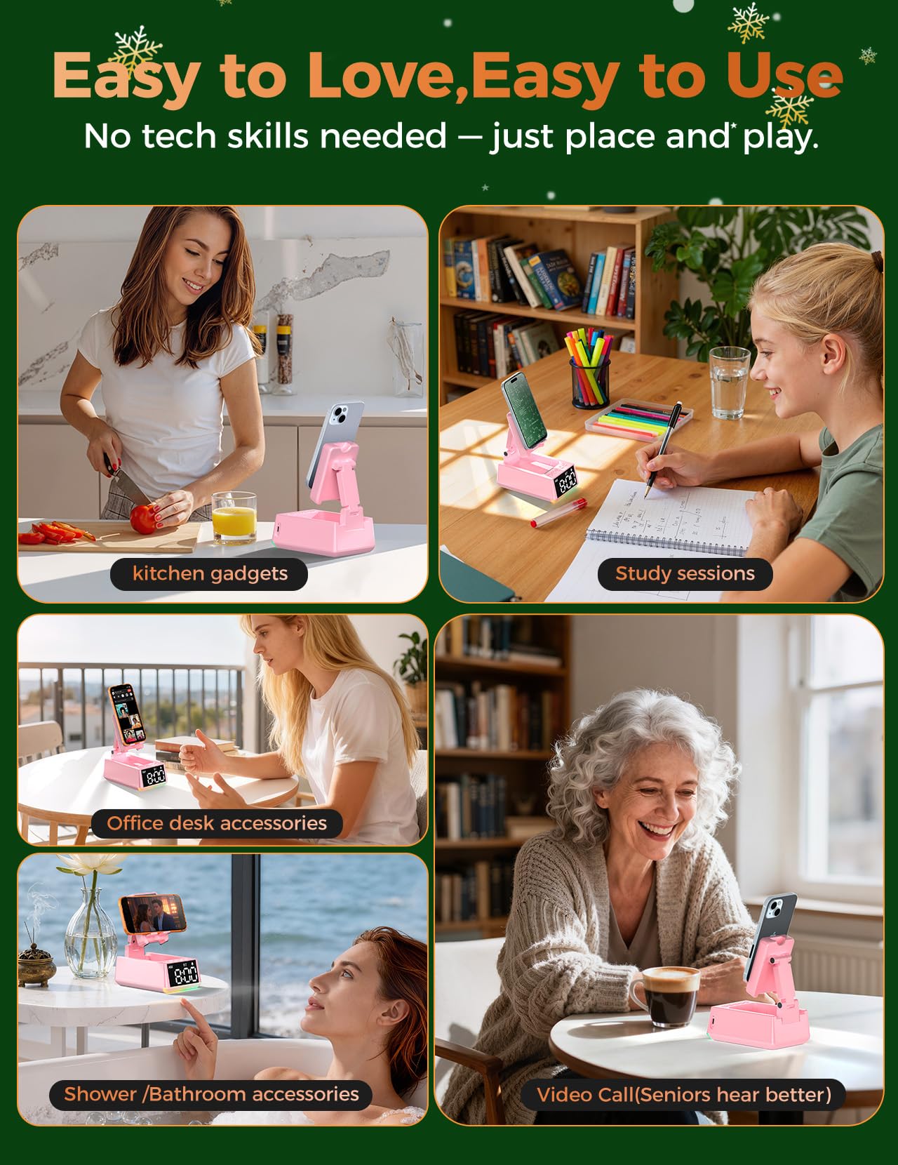 Instant Volume Boost-No Bluetooth Required:No more weak phone speakers. Just place your phone on the stand and enjoy louder,clearer sound instantly.Perfect for quick use without any setup