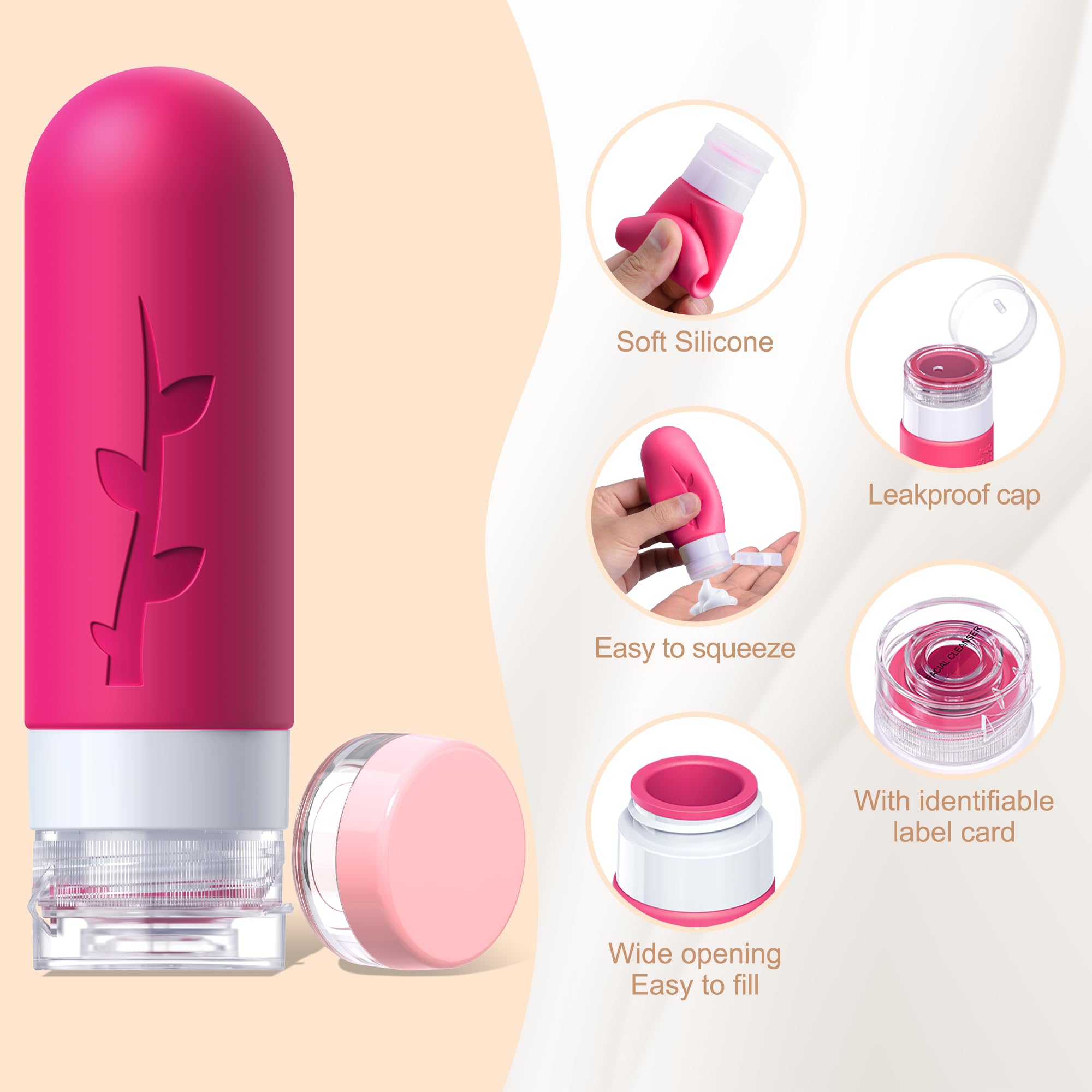 🥇【Tsa Approved Leak Proof Travel Bottles】The silicone bottles are designed with 3-layer leak-proof with a sturdy flip-top lid and a drip-free valve to protect your bottle from spills, leaks or drips during transport.Prevent your expensive cosmetics from leaking during travel, with our unique leak-proof design.