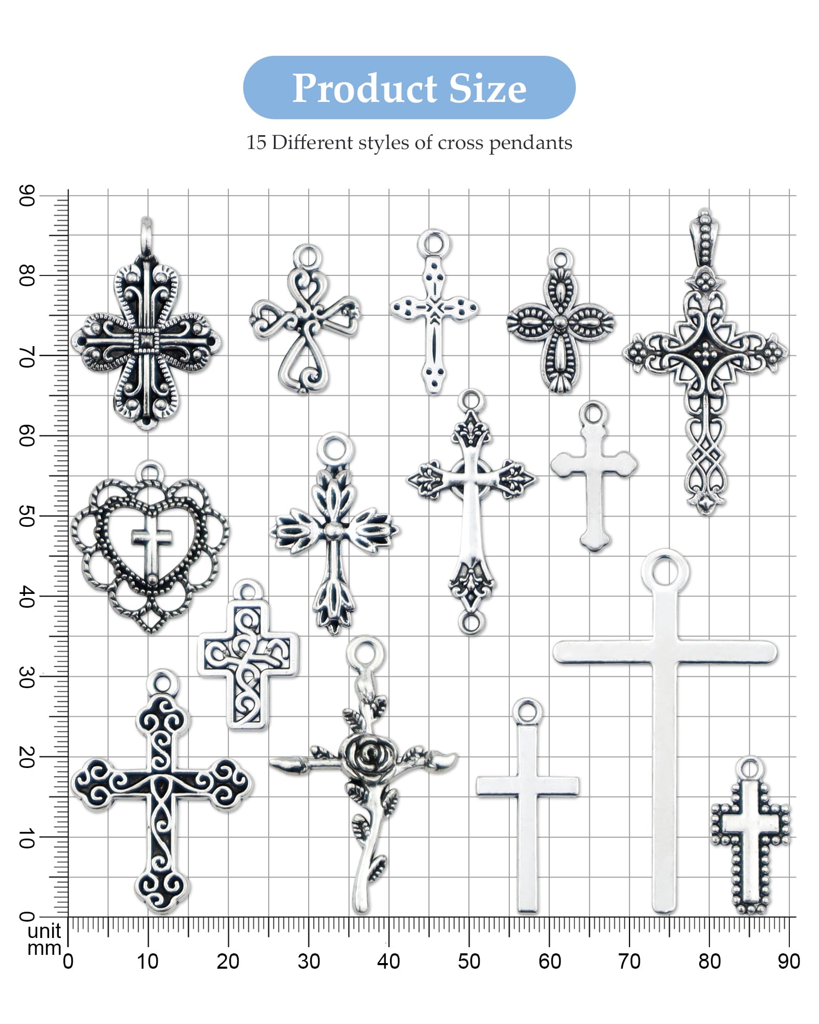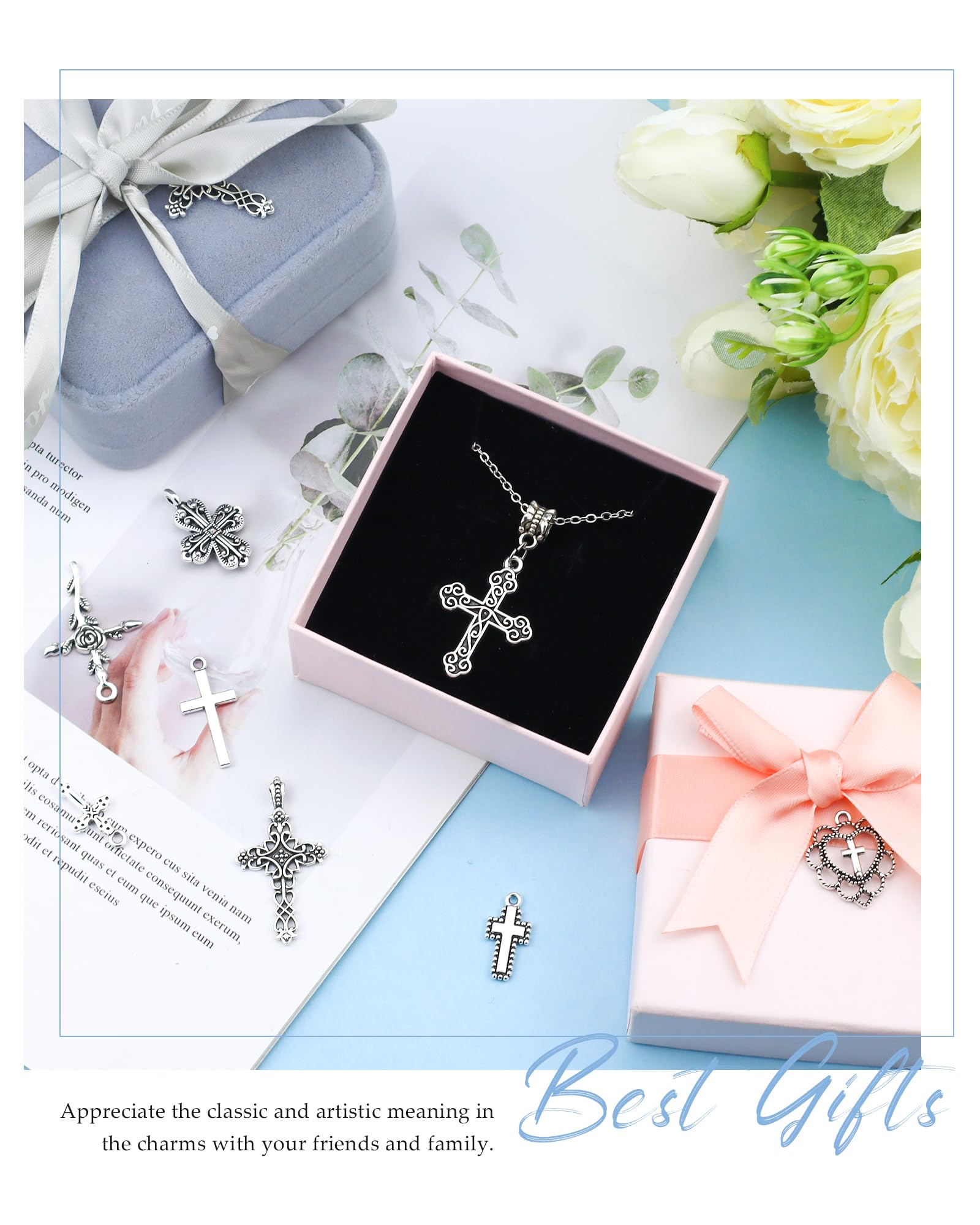 Adequate Quantity: You will receive 60 pieces of cross pendants in 15 styles, each style 4 pcs. Sufficient quantity for your long-term use, and can cater to your various decorative needs, you can also share them with your friends.