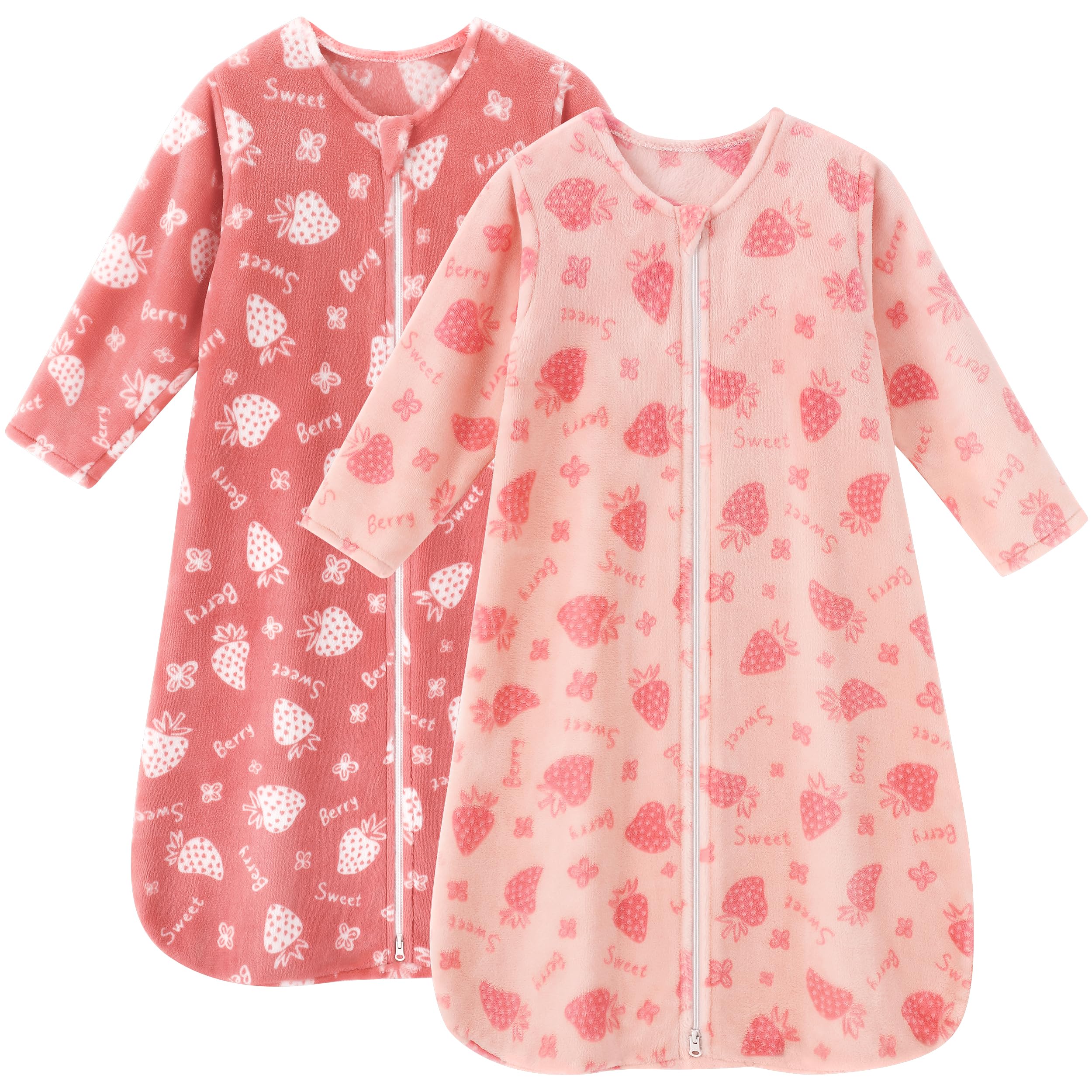 Warm Tips - Fleece baby Wearable Blanket come with 2 pack and machine washable. There are 4 sizes available for your choices: S(0-6 Months/10-18lb), M (6-12 Months/16-24lb), L(12-18 Months/22-18lb), XL(18-24 Months/26-34lbs). Please refer to our size chart carefully before you order long sleeve sleep sack.