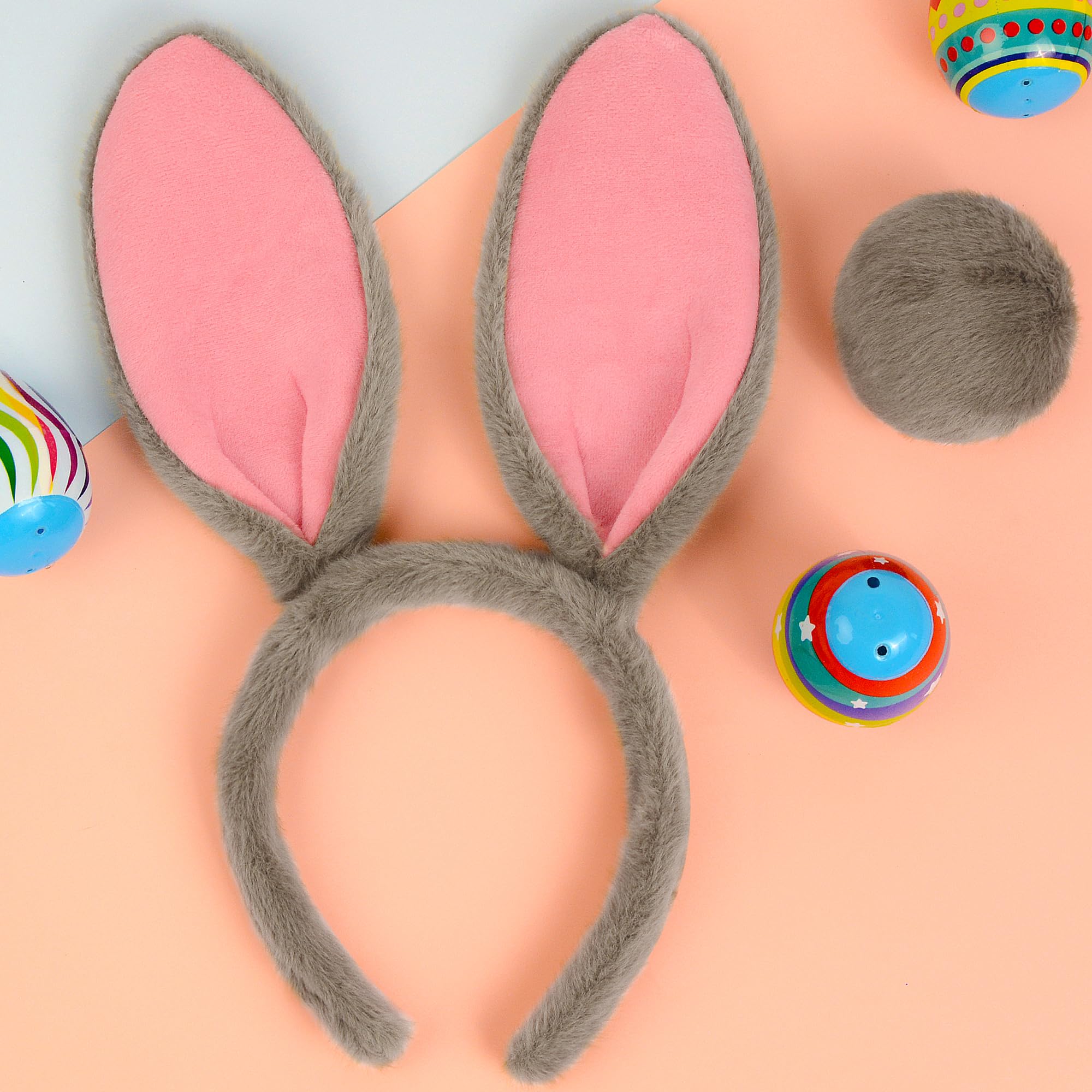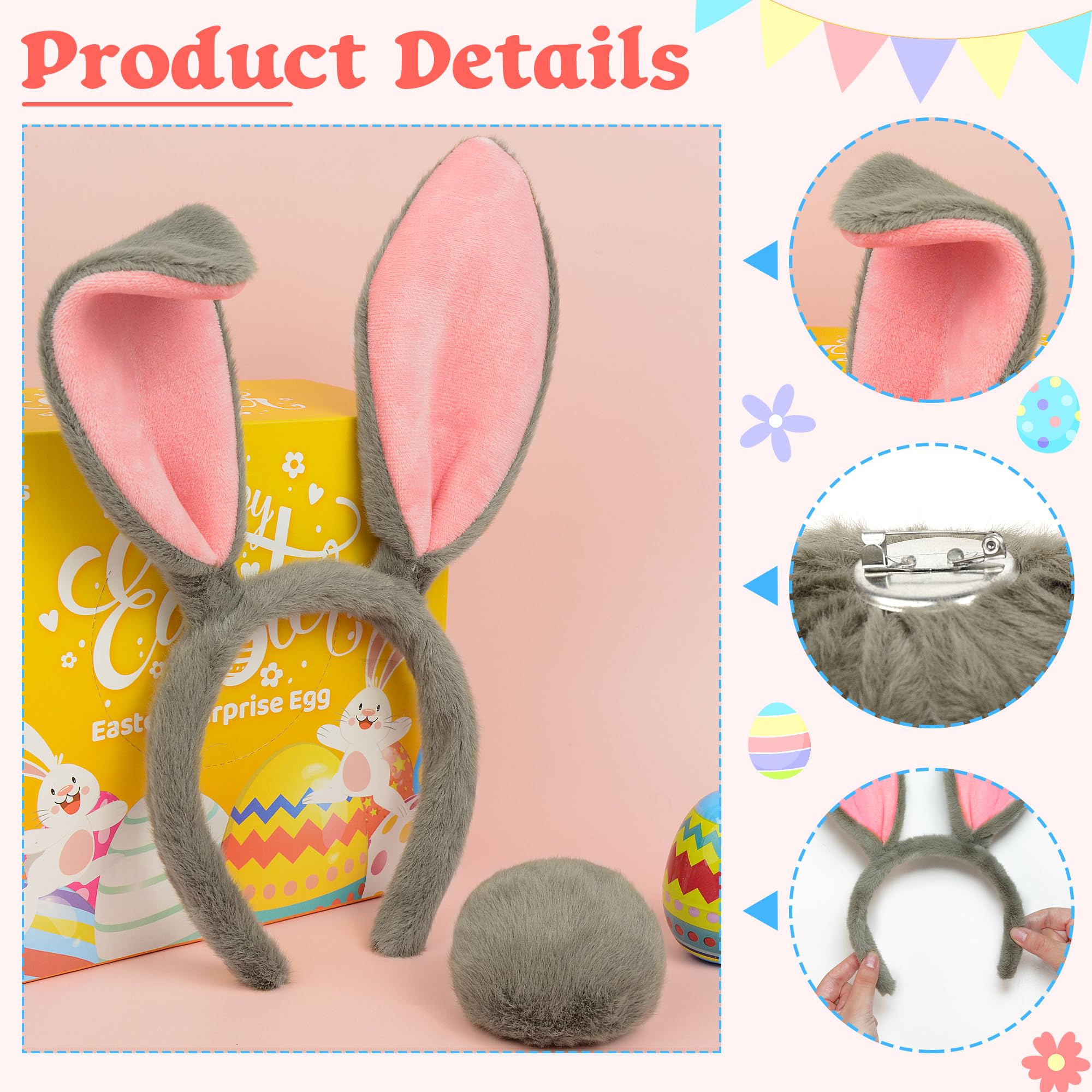 Easter Bunny Ears and Tail Set: The gray bunny ears costume set includes 1pcs grey bunny ears headband with pink inner ears and 1pcs grey bunny tail. The gray bunny ears costume set Suitable for ages 16+,The rabbit costume set is designed to add more cuteness and fun to your Halloween costume party