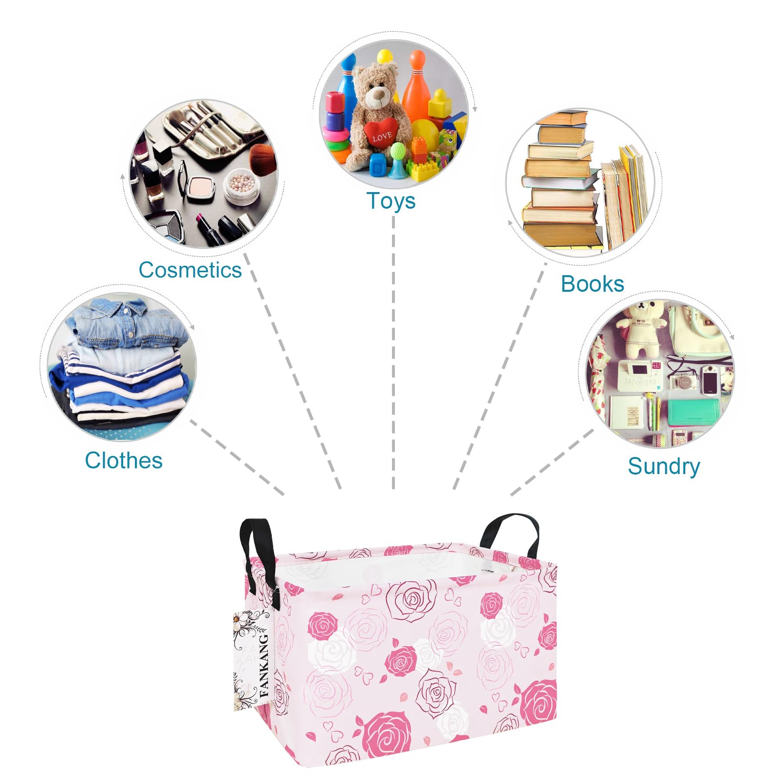This storage bag suitable for adult, teens, kids, children; suitable for toys, books, clothes and other stuff, suitable for home and school. Why choose our large storage basket? - Spacious capacity, store more stuff. - Sturdy side handles for easy toting. - Collapsible design for compact, convenient storage. - Cute lovely animal pattern design. - Multiple function, suitable for any place. Features: - Perfect organizer for play rooms, allowing for the storage of toys, books, blocks, stuffed animals, toys with multiple pieces, train sets, or board games. -reading materials, as well as in the bathroom for towels, or as a laundry hamper.