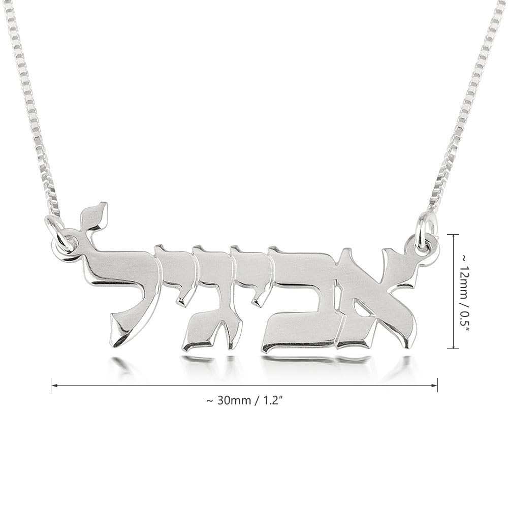 Description Our Hebrew Name Necklace, a timeless piece of jewelry that beautifully celebrates identity and heritage. Crafted with precision and care, this custom necklace showcases your chosen name in exquisite Hebrew script, making it a meaningful accessory or a thoughtful gift for any occasion. Premium Quality Materials: Our Hebrew Name Necklace is available in 14K gold, 925 sterling silver, 24K gold plating, rose gold plating, and 14K white gold, offering a luxurious and durable finish that suits every style. Elegant Design: The pendant is intricately designed with a 0.7mm thickness, creating a delicate yet sturdy piece that perfectly captures the essence of Hebrew lettering. Versatile Chain Options: This necklace comes with a sleek box chain, adding a modern touch to the traditional design. It’s available in various lengths to ensure the perfect fit. Perfect Gift: Whether it’s for a Bar/Bat Mitzvah, birthday, anniversary, or just because, this Hebrew Name Necklace is a personalized gift that speaks volumes. Handcrafted with Care: Each necklace is custom-made by skilled artisans, ensuring that your unique piece is crafted with attention to detail and a passion for quality. Celebrate your name or the name of a loved one with our custom Hebrew Name Necklace, a piece of jewelry that’s not just a statement of style, but a connection to culture and tradition.