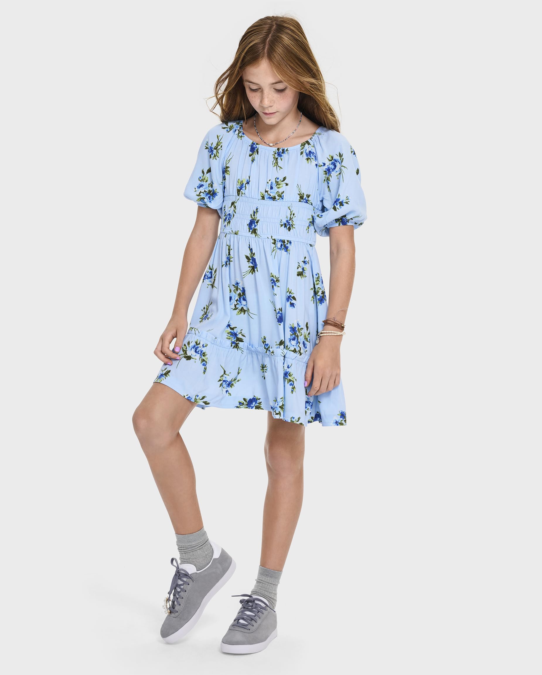FEATURES: Smocked details at bodice, floral print