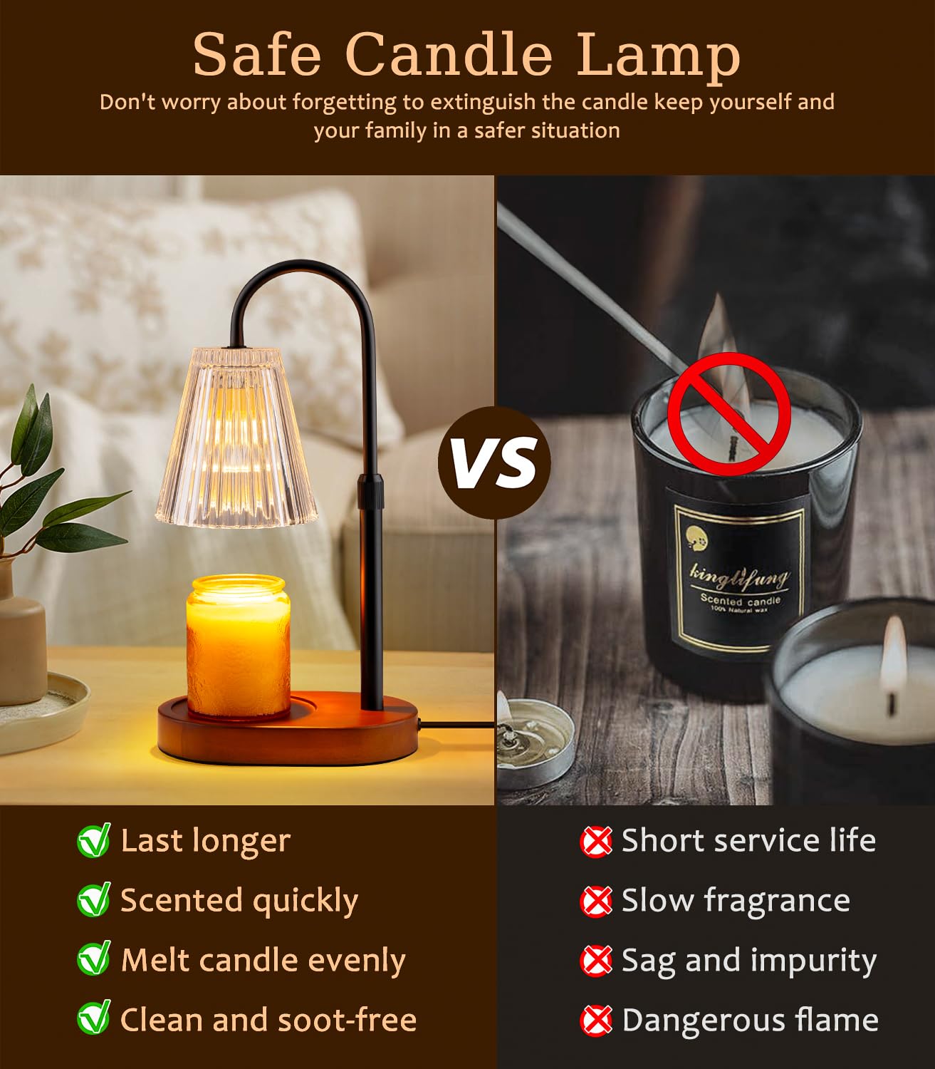 【Elegant Safe Candle Melter】 Wax melt warmer utilizes top-down heat melting technology to melt candles to provides a safe and eco-friendly way to enjoy candles. create a cozy atmosphere and cast nice ambient light. Electric candle lamp warmer can control the melting speed and use time of candles through timing and brightness adjustment, creating a comfortable atmosphere for you to sleep, yoga and read books.