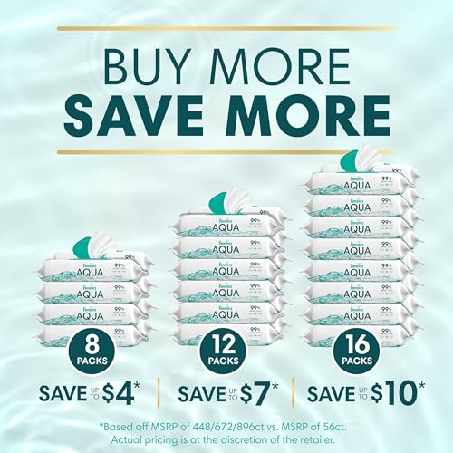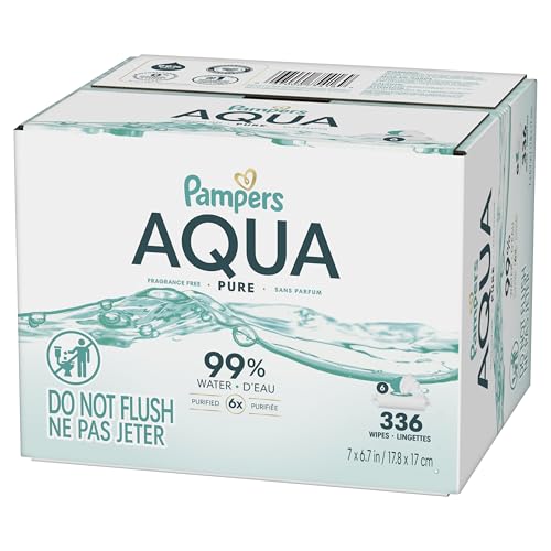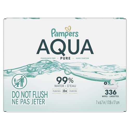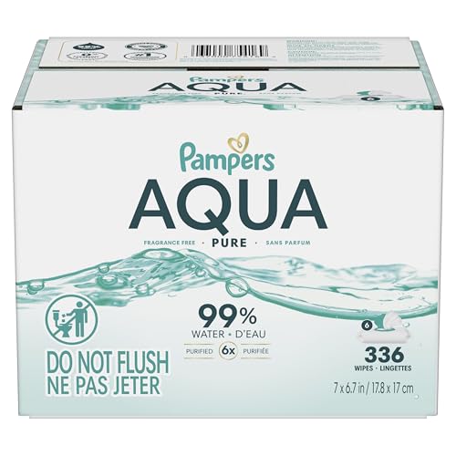 336 Wipes in 6 Packs of Pampers Aqua Pure Baby Wipes, 99% Water, Fragrance Free