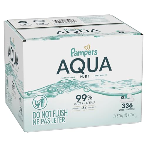 Pampers Aqua Pure baby wipes are made with 99% purified water and 1% dermatologically-tested, gentle ingredients. Aqua Pure 99% water wipes are hypoallergenic and made without alcohol*, suflates, parabens, dyes, phthalates, fragrance (*no ethanol) for a soft and gentle clean. Pampers Aqua Pure 99% water based wipes are clinically proven mild, meaning they are safe for newborn babies’ skin and are gentle enough for babies' bottoms, hands, and delicate faces. Aqua Pure 99% water based wipes are also endorsed by the leading pediatric dermatologists as being as mild on skin as a water and washcloth. They are dermatologist approved by the Skin Health Alliance. Aqua Pure 99% water based wipes help support healthy baby skin because they contain pH balancing ingredients to help protect baby's delicate skin. Pampers Aqua Pure 99% water based wipes are proven to help restore skin’s healthy pH better than the leading super-premium baby wipe brand. Plus, each pack includes our convenient 1-Wipe POP-TOP, which keeps our wipes from drying out and is designed to dispense one wipe at a time. Aqua Pure 99% water based wipes are from Pampers, the #1 pediatrician recommended brand. For purely healthy skin, use Pampers Aqua Pure 99% water based wipes together with Pampers Swaddlers diapers. *no ethanol