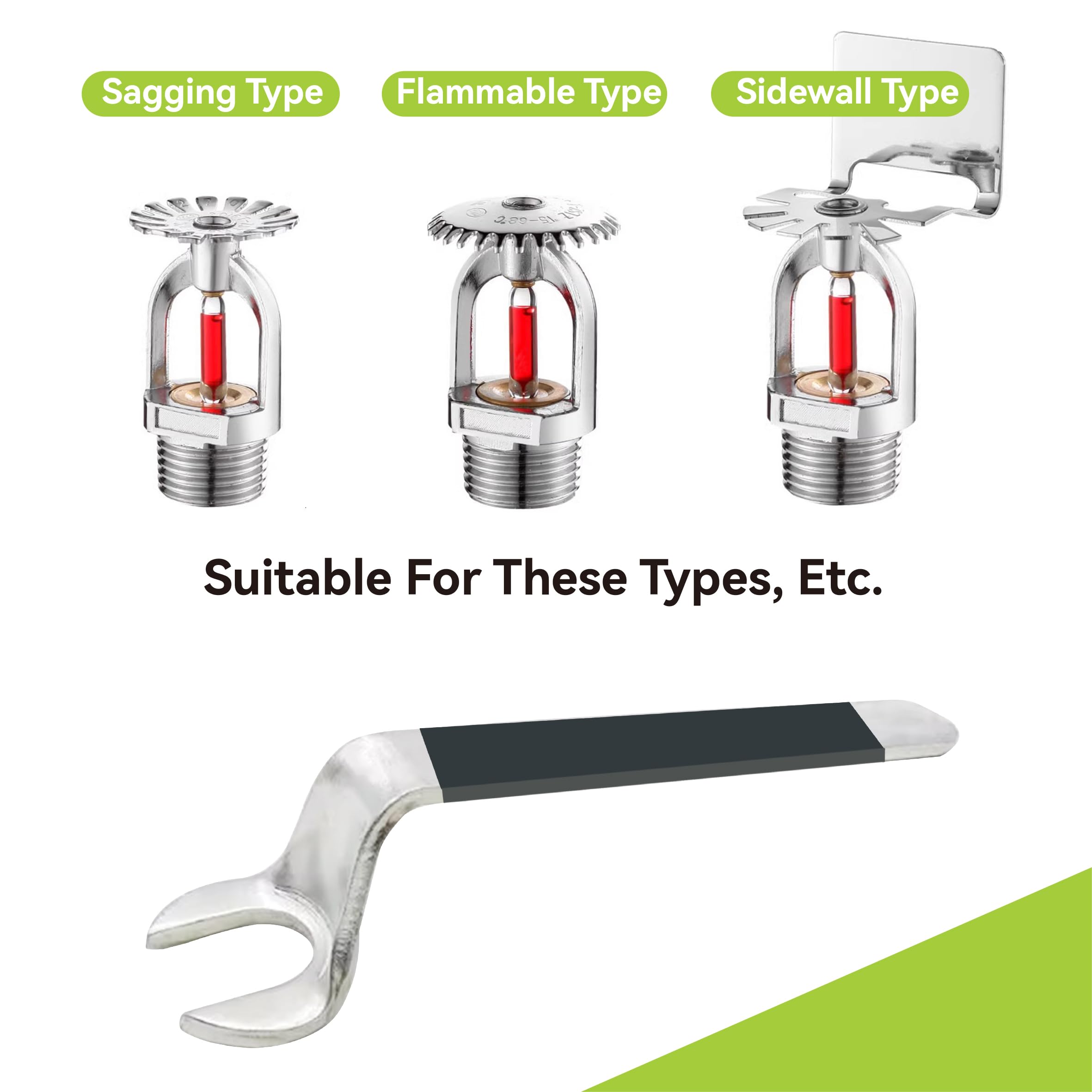 UNIVERSAL FIRE SPRINKLER WRENCH designed for 1/2 inch semi-recessed, concealed, and exposed sprinkler heads, ensuring a perfect fit every time. With its UNIVERSAL FIRE SPRINKLER HEAD WRENCH capability, it's a must-have for any fire safety toolkit.