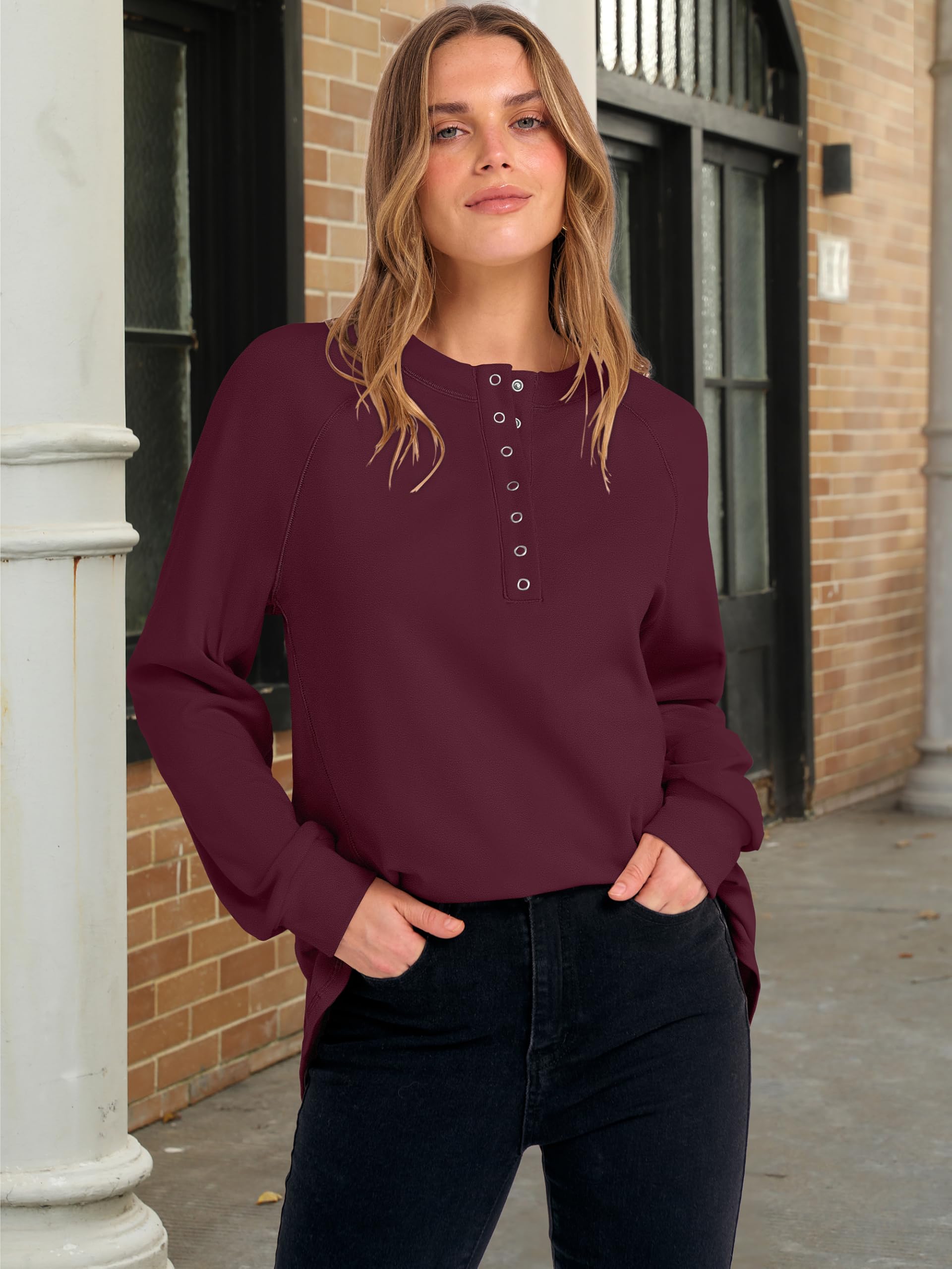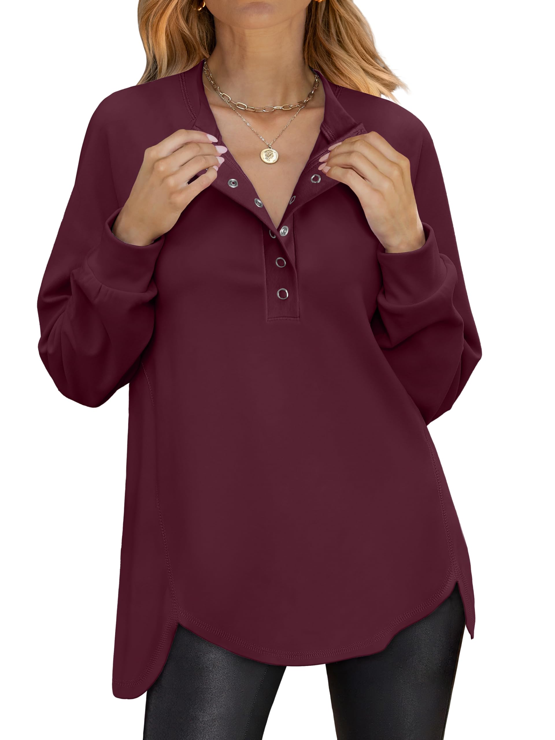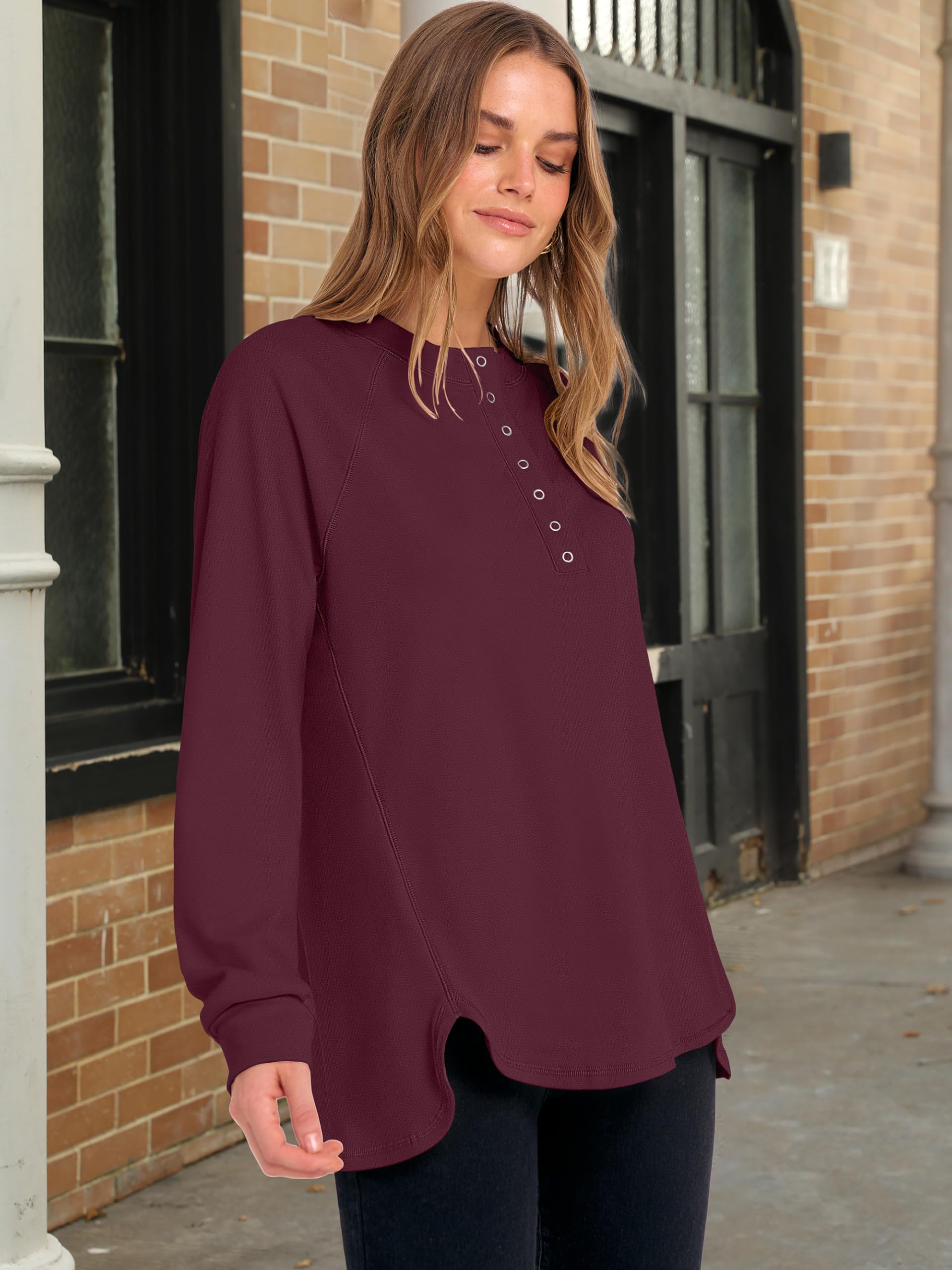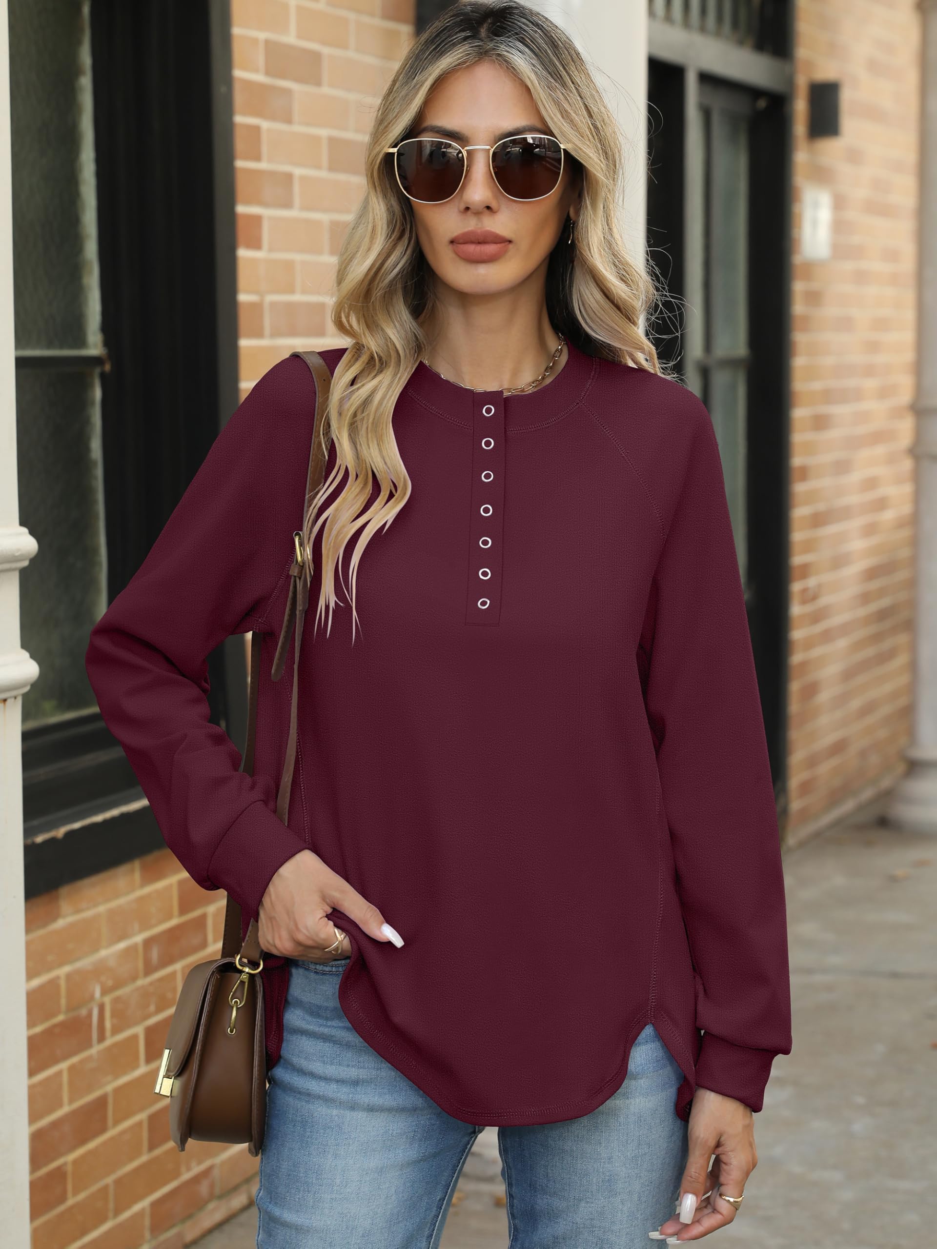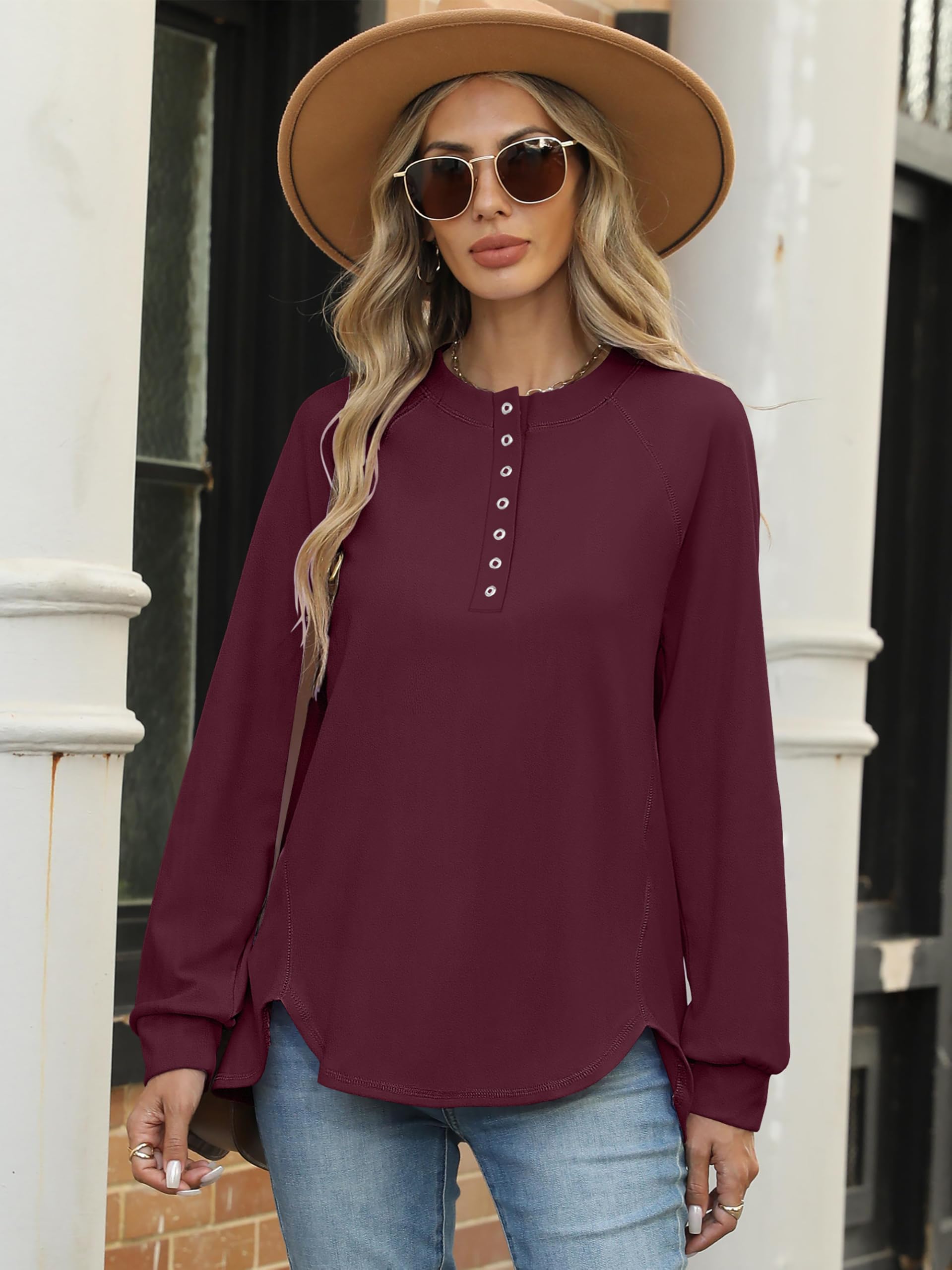 Features - Women’s fall tunic top, long sleeves, button - detailed henley collar. Ideal for daily wear, parties, dates, vacations, office, family gatherings, etc., bringing a chic and comfortable look.
