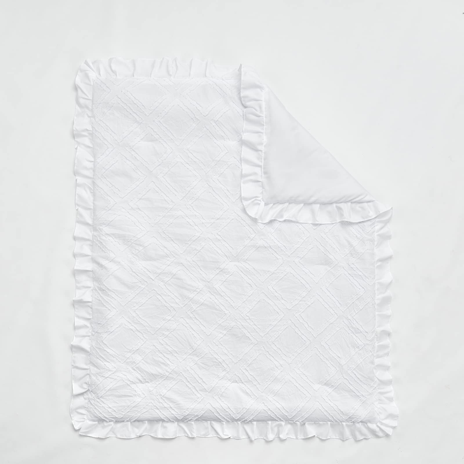 [ Design ] Tufted Shabby Chic boho Style with ruffle, Simple and sophisticated jacquard tufted embroidery design brings you the visual enjoyment of beauty. The comforter have 2 inches ruffle and make it very cute and luxury for boys or girls. The main style is solid color style. American country style crib bedding set. Try some simple color and offer you baby a nice sleep. Boho tufted style is super great for the coming spring