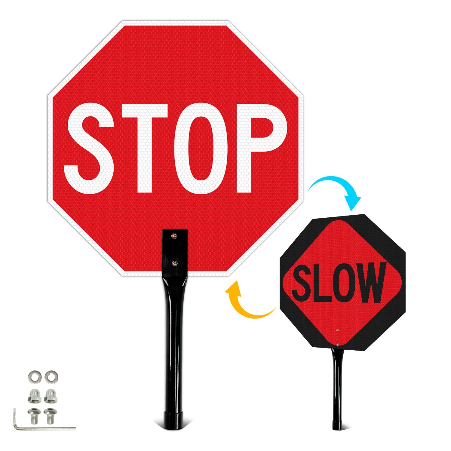 RECHARGEABLE - Traffic baton set comes with 2 traffic flashlight, 2 rechargeable batteries and 1 battery charger. After the battery is used up, you can use the battery charger in the package to charge it, so that you do not need to buy batteries again.