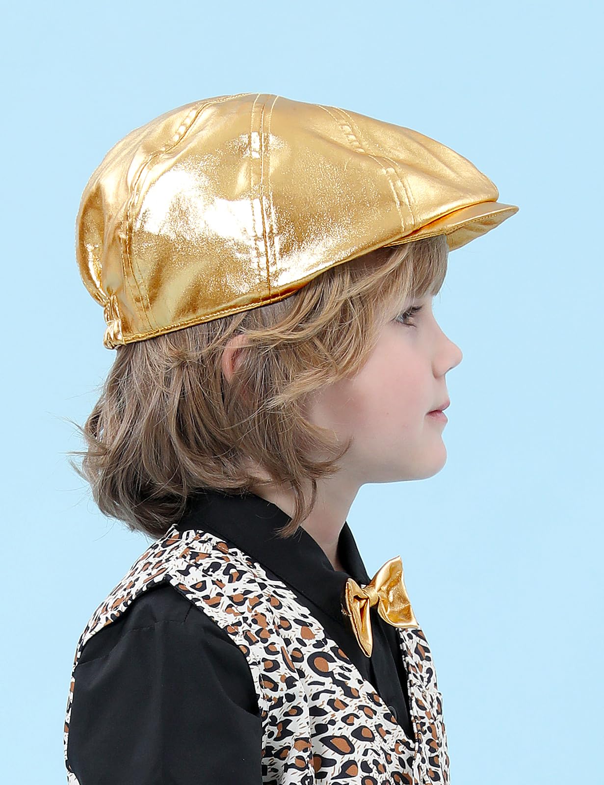 Baby boy gold glitter hat is designed with elastic band to adjust and soft lining to wear easily and comfortably.
