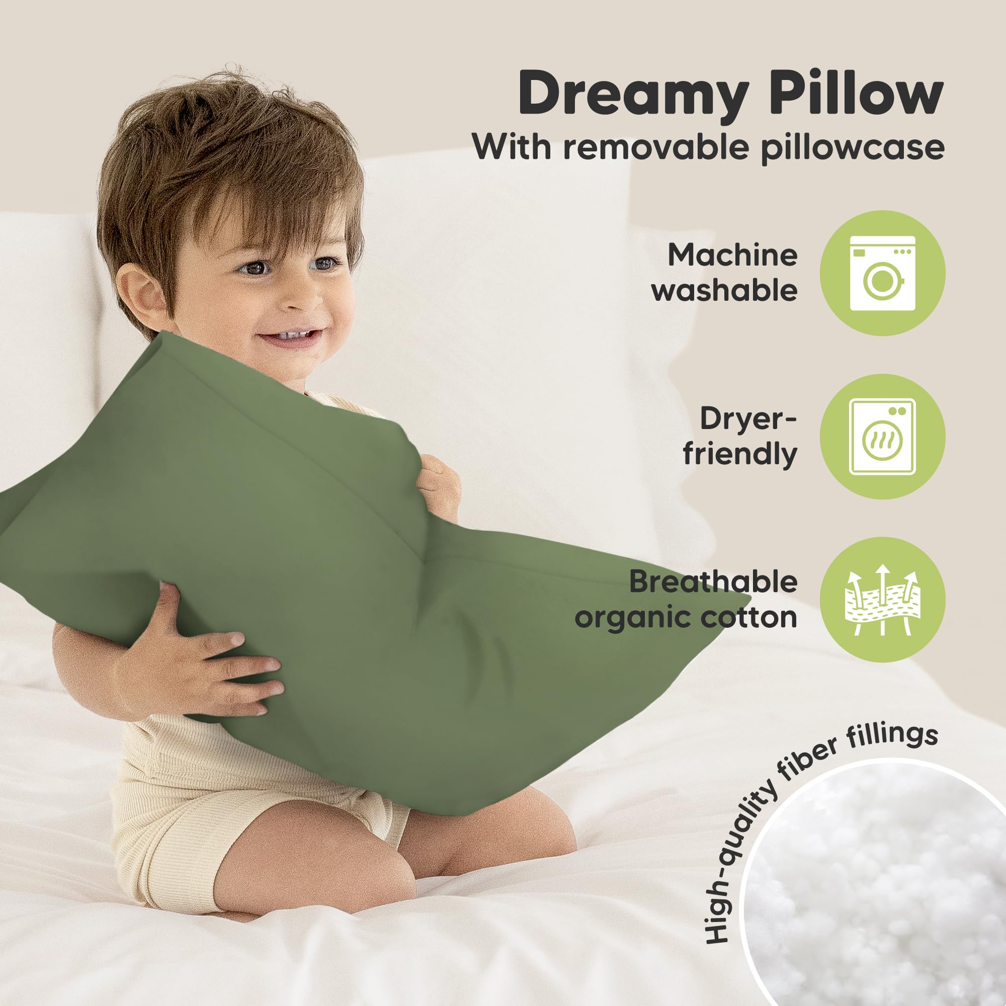 Durable & Washable - Our toddler pillows and toddler pillowcases are machine washable and dryable for easy cleaning. Made from high quality organic cotton pillow cover and fiber fillings, this small pillow stays fluffy, fresh and cute for regular use.
