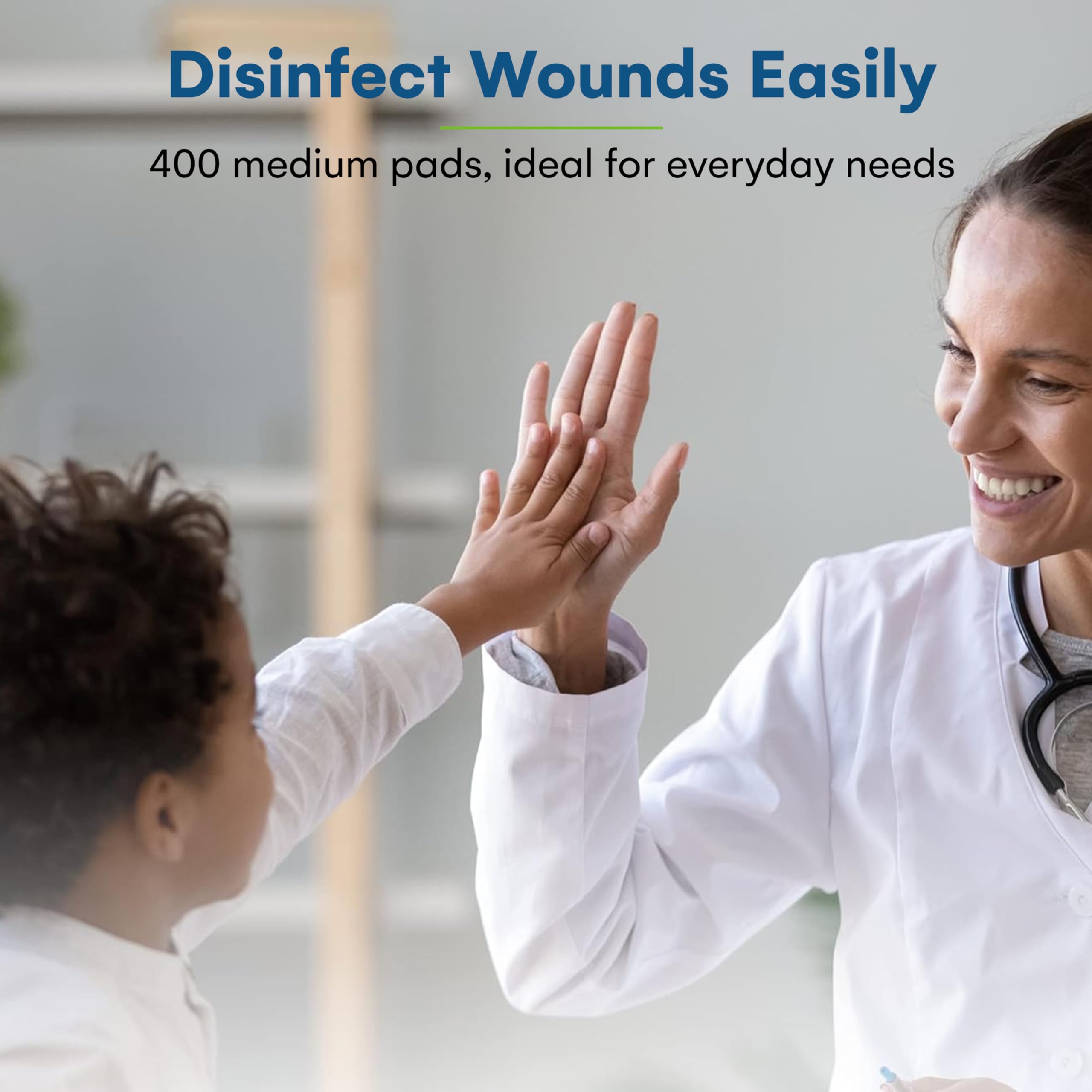 HOME MEDICAL ESSENTIAL: Isopropyl alcohol pads are great for home first aid kits, medical prep and sanitizing surfaces; 400-count provides long-lasting supply for routine injections or emergency needs