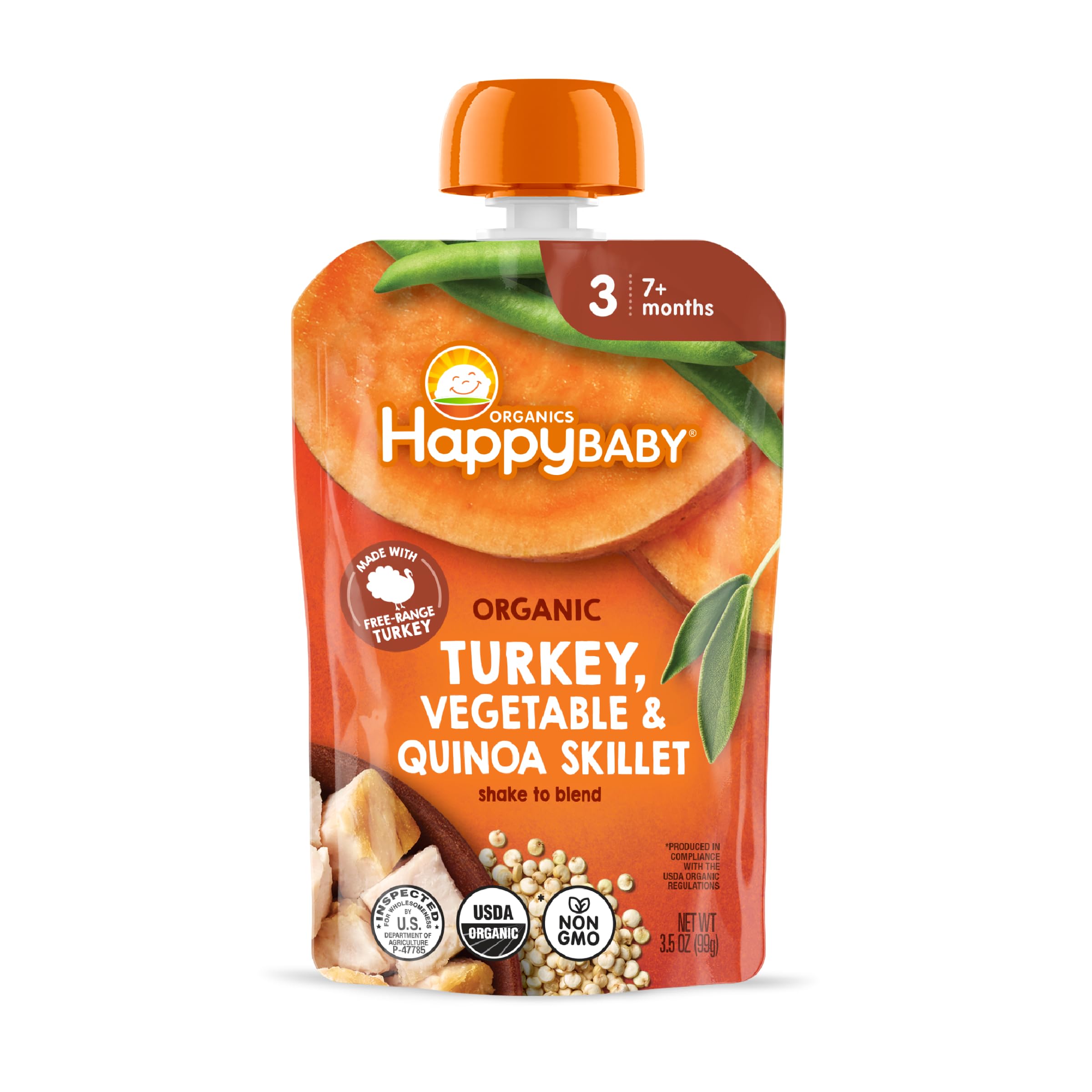 Happy Baby Organics Savory Blends Stage 3 Baby Food Puree, Free Range Turkey, Harvest Vegetables & Quinoa Skillet, 3.5 Ounce (Pack of 16)