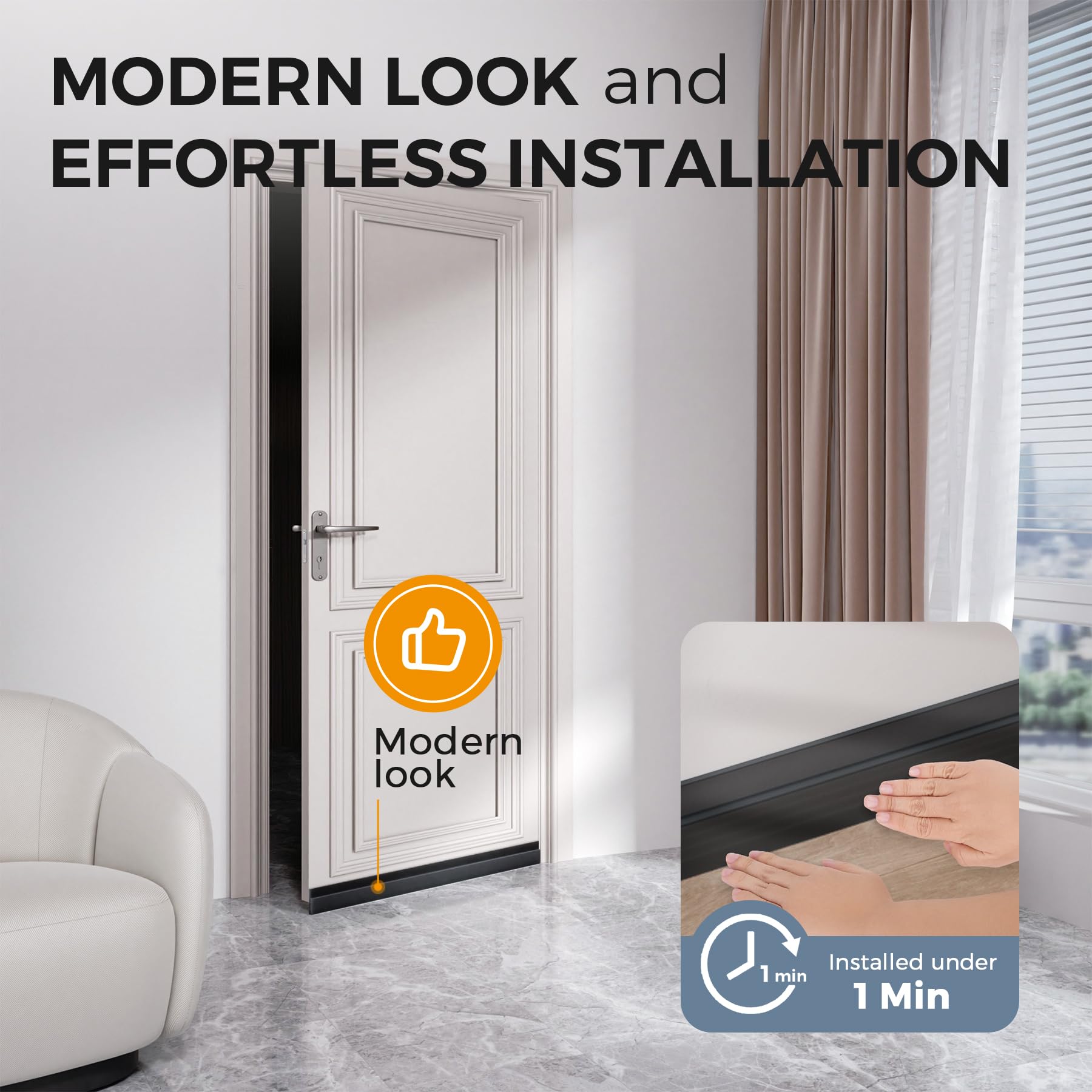 WONDERFUL DESIGN - Door sweep for bottom of door triple design is adopted to effectively reduce noise, prevent dust from entering through the door, the door stoppers for bottom of door keeps the room quiet and neat. Self-adhesive door draft blocker is very suitable to cover the gaps of exterior/interior doors, rv doors, shower room, baseboard, threshold, windows, garage, basement and furniture