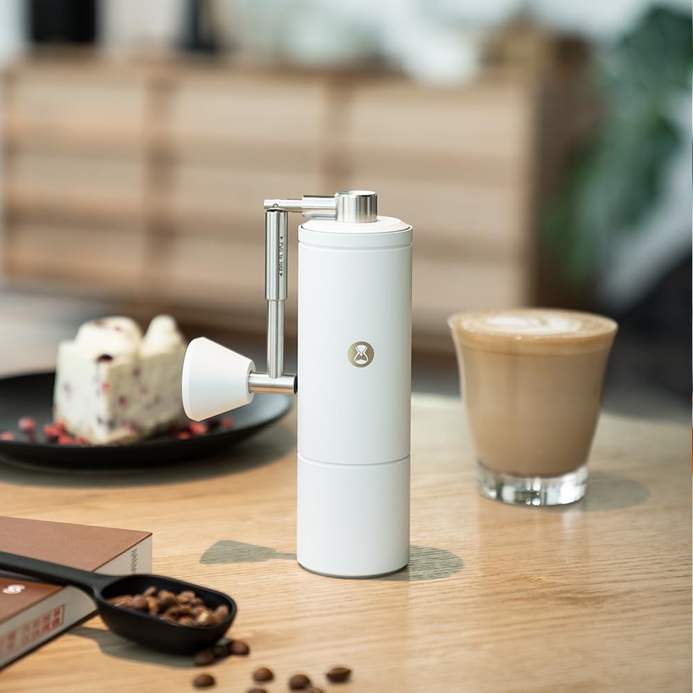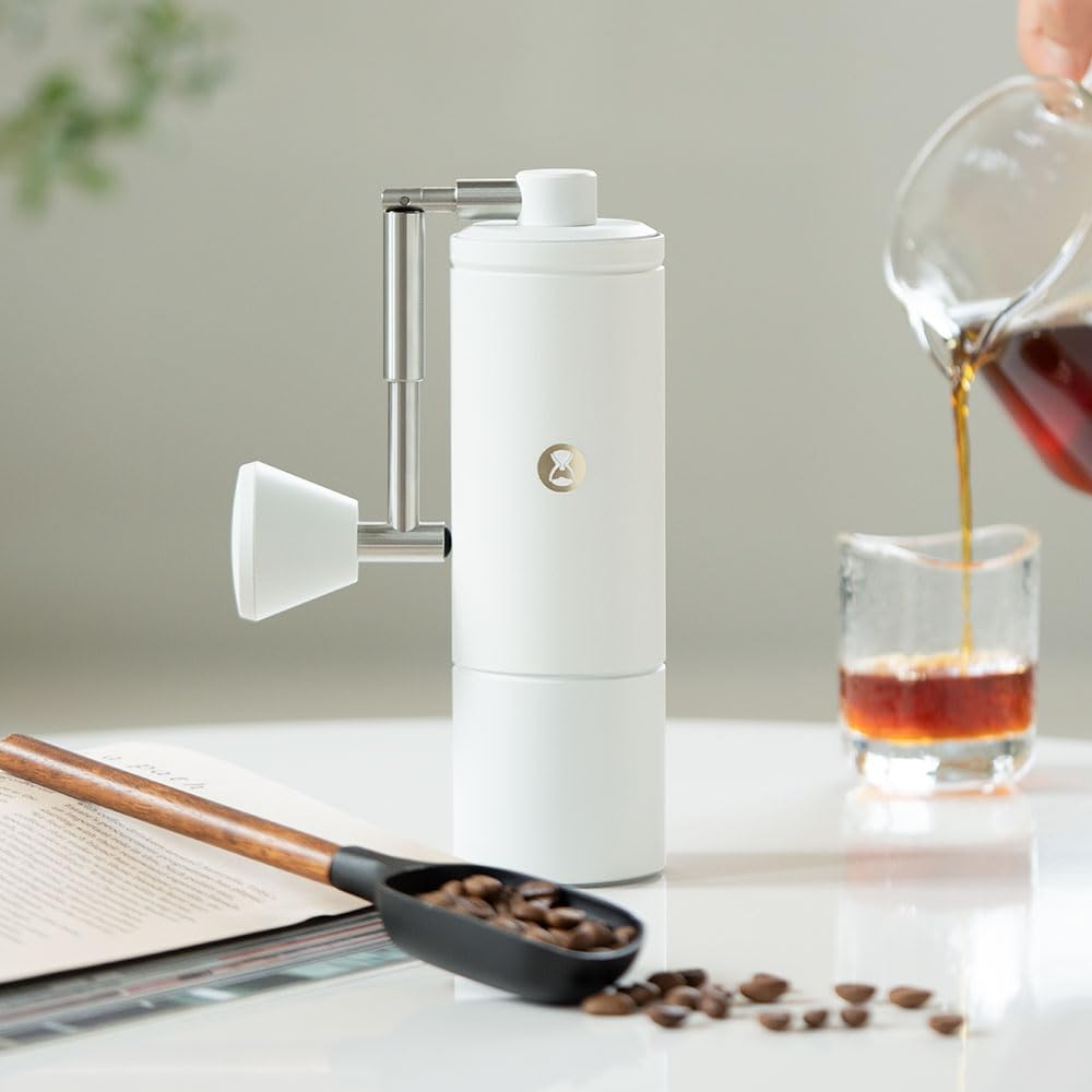 Keep Fresh Coffee Flavor Everday - Indulge your coffee desires TIMEMORE professional coffee grinders are made of high quality materials. If you turn the hand crank clockwise, you can feel the beans being broken and ground, release the rounded and intense flavor of the coffee beans. Enjoy the wonderful grinding experience by hand only! Allow you to grind the right amount before brewing, ensuring you get the freshest and most delicious coffee everyday! Features: ✦Adjustable Coarseness Settings Clockwise rotate get finer powder; Anti-Clockwise rotate get coarser powder. ✦Convinent To Use with No Noise With no battery, no electric needed, the hand coffee grinder helps you enjoy quiet mornings without any noise. ✦Easy To Clean & Simple To Carry Easy to disassemble for cleaning. With compact & portable size, perfect for camping, hiking or travelling. Specifications: Name: Chestnut C5 Pro White Coffee Grinder; Material: Aluminum Alloy, Stainless Steel, PC; Body Size: 6.26 Inch x 2.09 Inch x 6.44; Handle Size: 6.26 Inch; Package Weight: 1.3 lbs; Max Capacity: About 25g Beans(according to beans type) Package Included: 1* C5 Pro White Manual Coffee Grinder; 1* Cleaning Brush; 1* Carry Bag, 1* User Manual. Warm Tips: 1.This equipment is only designed to grind roasted coffee beans, please do not grind other items; 2.It is recommended using a brush(package included) to clean the equipment, do not wash it with water; 3.The edge of the grinding core is relatively sharp, please pay attention to avoid scratches.