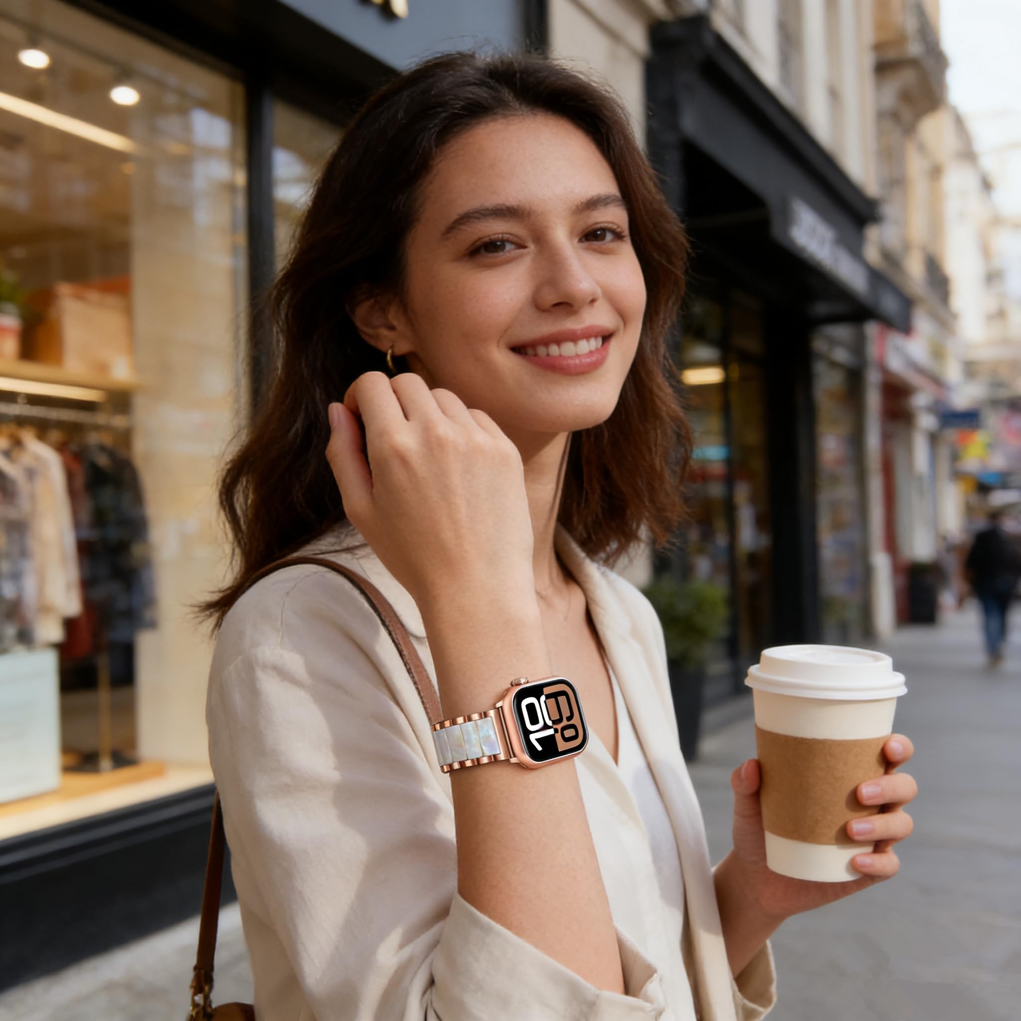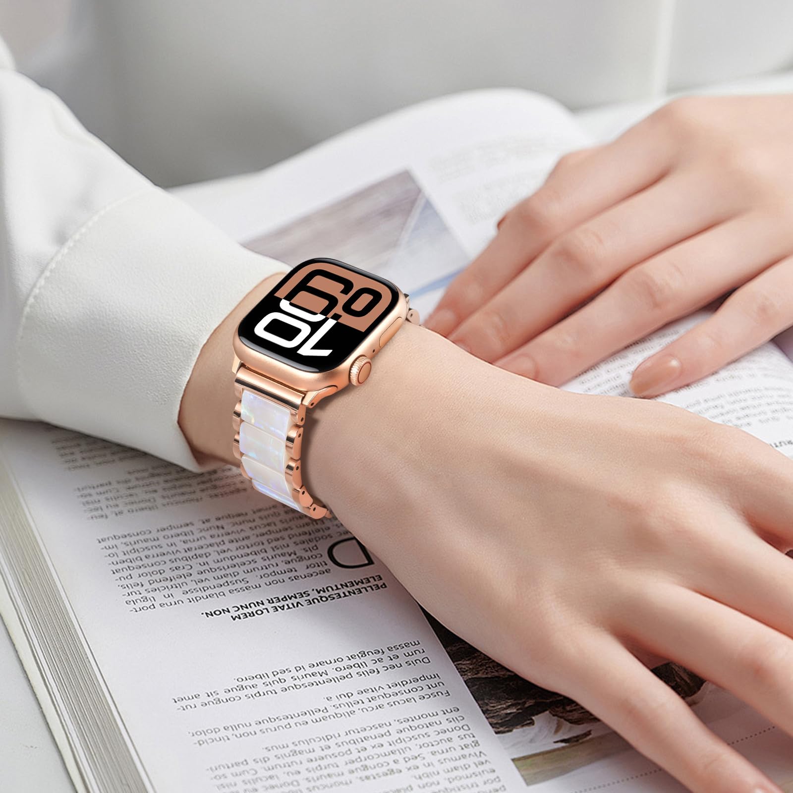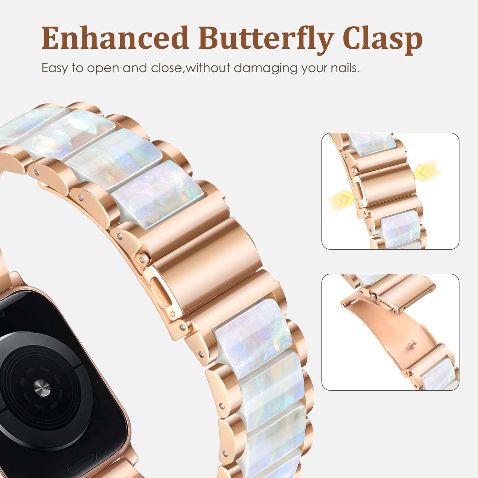 🎅Premium Materials - The V-MORO 45mm/46mm Apple Watch Band elevates luxury with nano vacuum plating stainless steel framework, offering exceptional corrosion resistance and a lasting luster. Each metal link is meticulously finished for a seamless, jewelry-grade feel. At its heart, hand-polished resin inlays showcase a brilliant, depth-rich gloss—carefully positioned to complement your wrist’s natural curve. Precision assembly ensures fluid flexibility, adapting effortlessly to every movement while maintaining a snug, rattle-free fit.