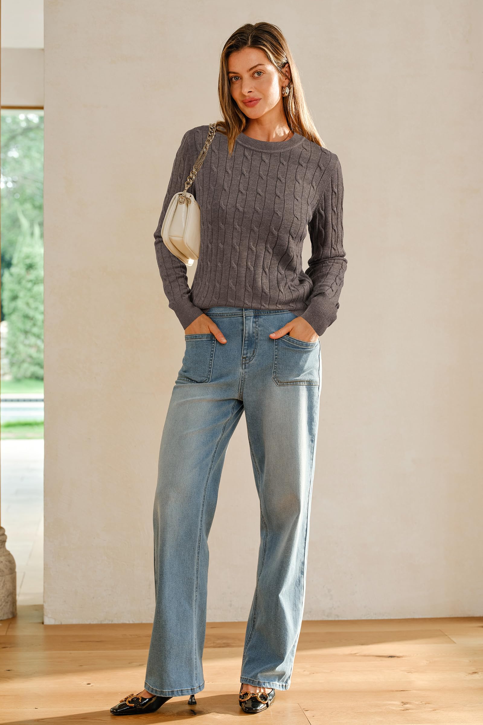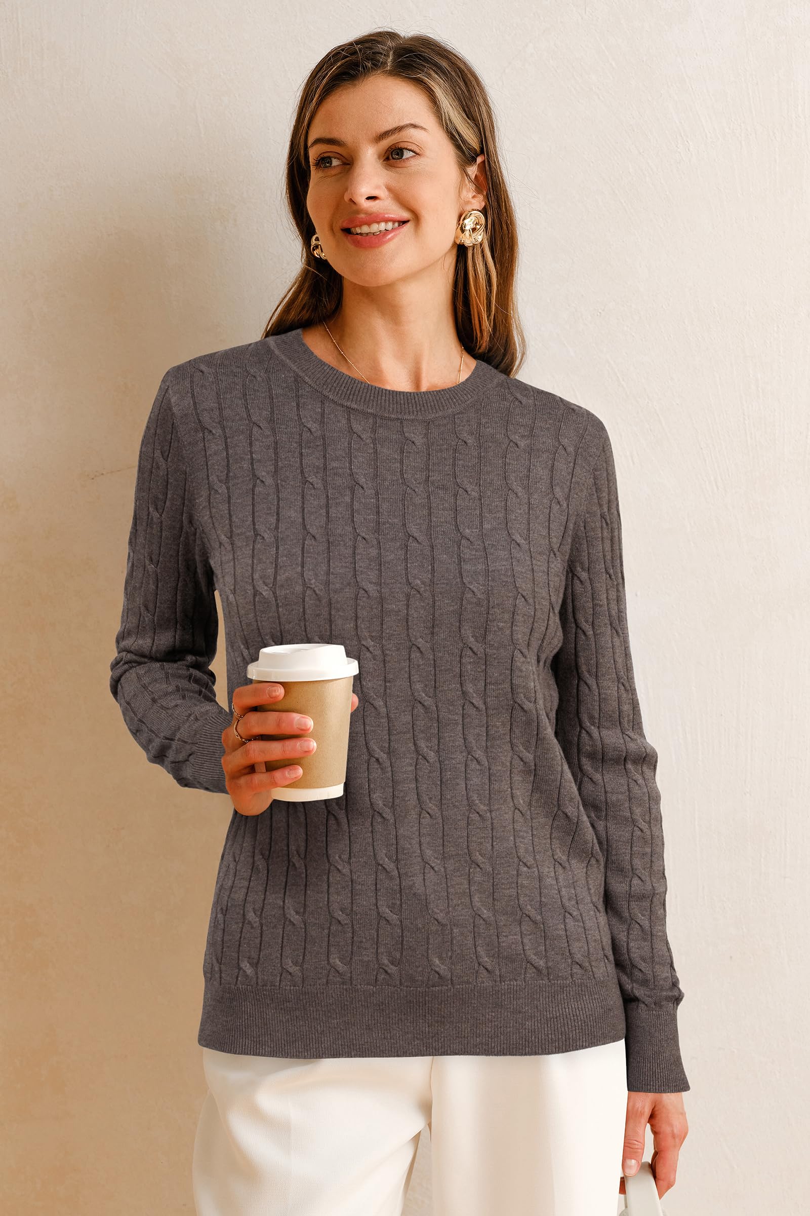 Features: Women's Classic Cable Knit Tops / Long Sleeve / Crew Neck / Loose Fit / Winter Layering / Elasticated Hem / Pullover Sweater