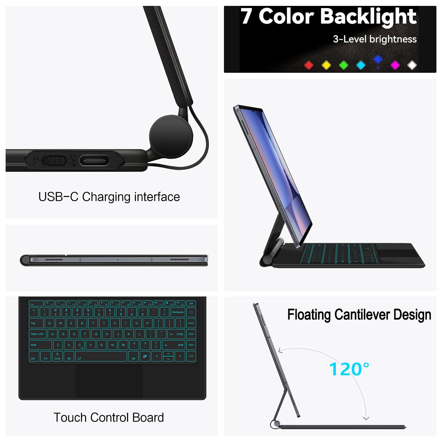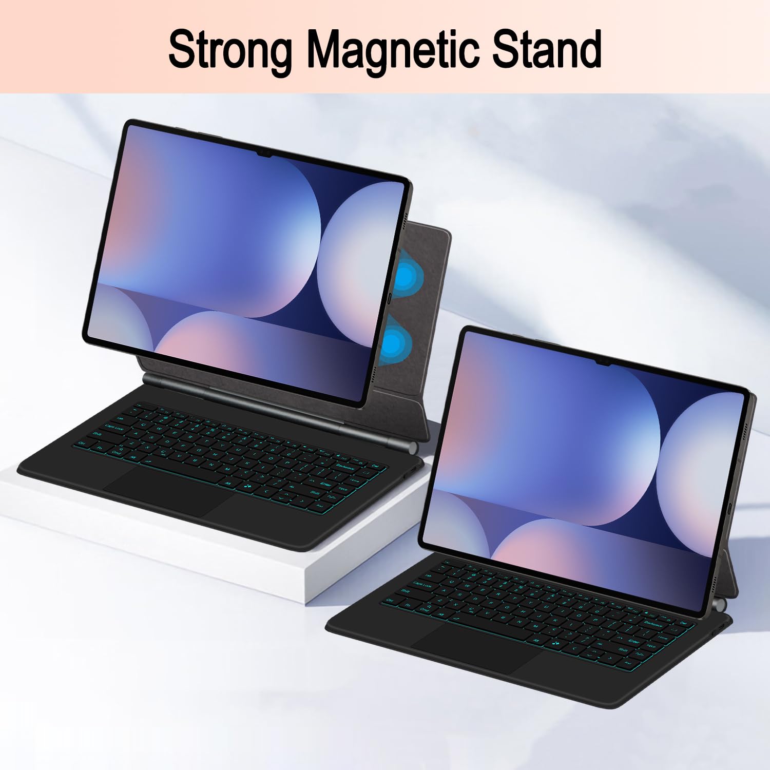 for Samsung Galaxy Tab S10 Ultra Keyboard Case 14.6'' Magic-Style Cantilever Magnetic Levitating Stand, 3-Level 7-Color Backlit, AI Key, Book Cover Keyboard with Multi-touch Trackpad for Tablet S9 Ultra What's in the box 1 * S10 Ultra / S9 Ultra Book Cover Style Keyboard Case 1 * USB-C Charging Cable 1 * User Manual Wireless connection 1. Slide the button to "ON" to turn on the keyboard power. 2. Press the "Fn+C" button to enter Wireless matching status, The Wireless indicator light will flash blue. 3. Turn on the wireless on the machine device. Search for keyboard name (Wireless Keyboard) 4.The connection is successful, and the Wireless indicator light stops flashing. Please note only Landscape mode is available (Can only be positioned horizontally, Can't be positioned vertically). COMPATIBILITY FOR GALAXY TAB 14.6": The keyboard case Exclusively works with Samsung Galaxy Tab S10 Ultra 14.6 inch Model 2024 (Wi-Fi SM-X920, 5G SM-X926B), Tab S9 Ultra 14.6 inch Model 2023 (SM-X910/SM-X916B), Tab S8 Ultra 14.6 inch 2022 (SM-X900/SM-X906). (Tablet and S Pen not included) Please check your tablet model in "Settings - About Tablet" before purchase FLOATING CANTILEVER MAGNETIC STAND: Magic-style keyboard has a magnetic suspension design, easily turns your tablet into a laptop using strong magnetic suction. It makes your tablet suspend 120° in the air and provides you with a more perfect viewing angle. Easy to carry anywhere, no matter you are in the office, at home, or on a go, transform your Samsung Tablet into a laptop within a second. One-click to switch DEX mode, AI key and boost your productivity 7 COLORS BACKLIT KEYBOARD: Designed with 3-level brightness and 7-color backlight, it's easy to adjust by shortcut key. It’s convenient to type in low light, reducing eye fatigue, if you're working or gaming in the dark. The wireless keyboard can be used for 150 hours without backlight and up to 10 hours of continuous use with backlight. Fully charged in 3 hours using Type-C charging cable included MULTIFUNCTIONAL TOUCHPAD KEYBOARD: The intelligent keyboard has some shortcut key functions, such as Back to Home, Screenshot, Cut, Copy, Paste, Previous/Next Song, Play/Pause, Volume Up/Down, Lock Screen. Widen laptop-like keys help us type fast and comfortable. The built-in touchpad also supports single-finger, two-finger, and three-finger gestures, allowing for quick and easy navigation of the tablet. Such as clicking, swiping, scrolling. Perfectly realizing the function of a mouse and feeling as comfortable as operating a laptop. Bringing you high work efficiency PROTECTIVE KEYBOARD AND CASE: Sleeve is folded to provide front and back protection wherever you go. Precise sections enable full access to all connections, sensor, speaker, Microphone and camera GUARANTEE: Enjoy lifetime technical support and an extra 1-year manufacturer's warranty. Package includes a Bluetooth keyboard, USB-C charging cable, and a detailed product manual with step-by-step instructions