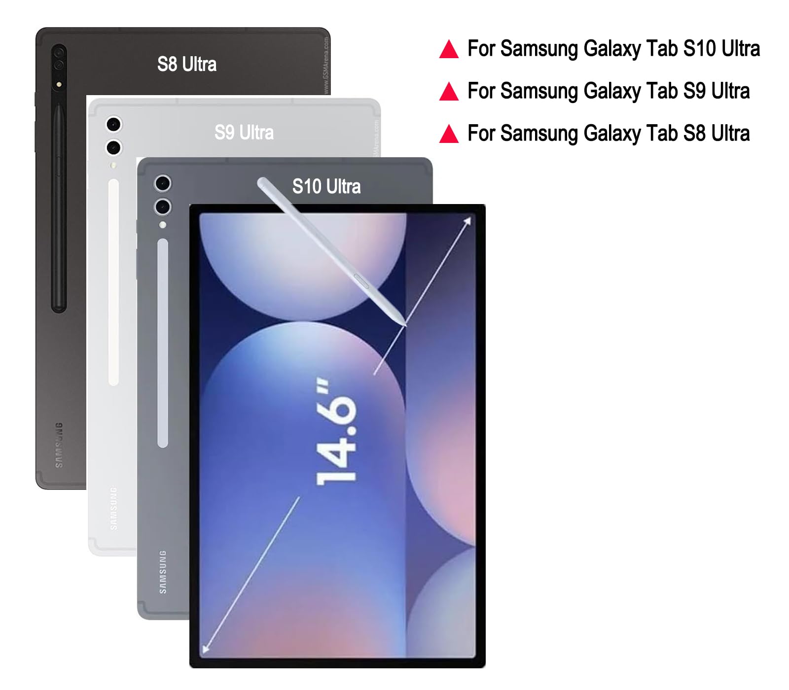 [Compatibility for Galaxy Tab 14.6'']: The keyboard case is excludively designed for Samsung Galaxy Tab S10 Ultra 14.6 inch Model 2024 (Wi-Fi SM-X920, 5G SM-X926B), Tab S9 Ultra 14.6 inch Model 2023 (SM-X910/SM-X916B), Tab S8 Ultra 14.6 inch 2022 (SM-X900/SM-X906). (Tablet and S Pen not included) Please confirm your tablet model in "Settings - About Tablet" before purchase