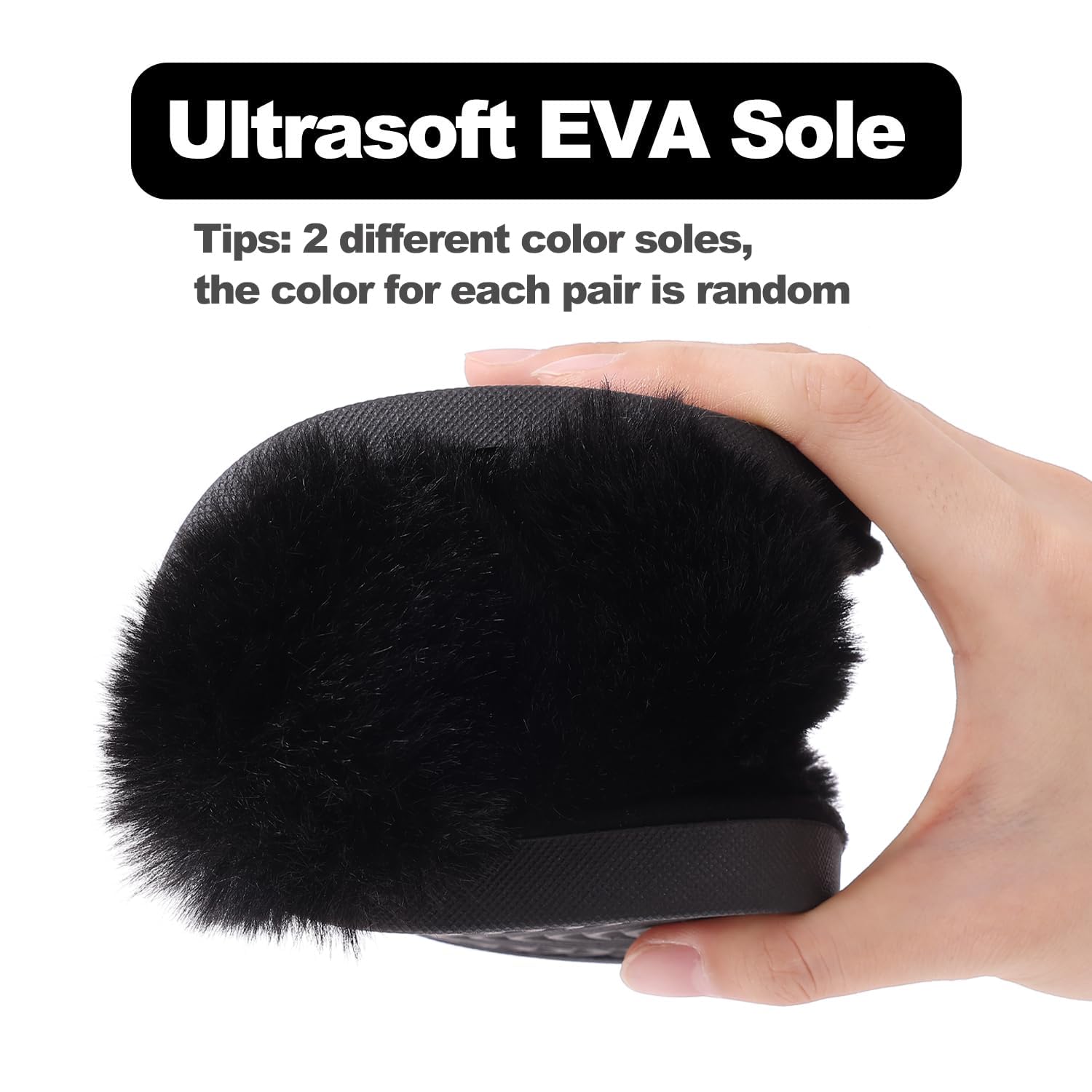 FASHION & ELEGANT: Breathable open-toe along with trendy faux fur design makes these womens slippers stylish and practical. Easily slides in whenever you want your feet relaxed.