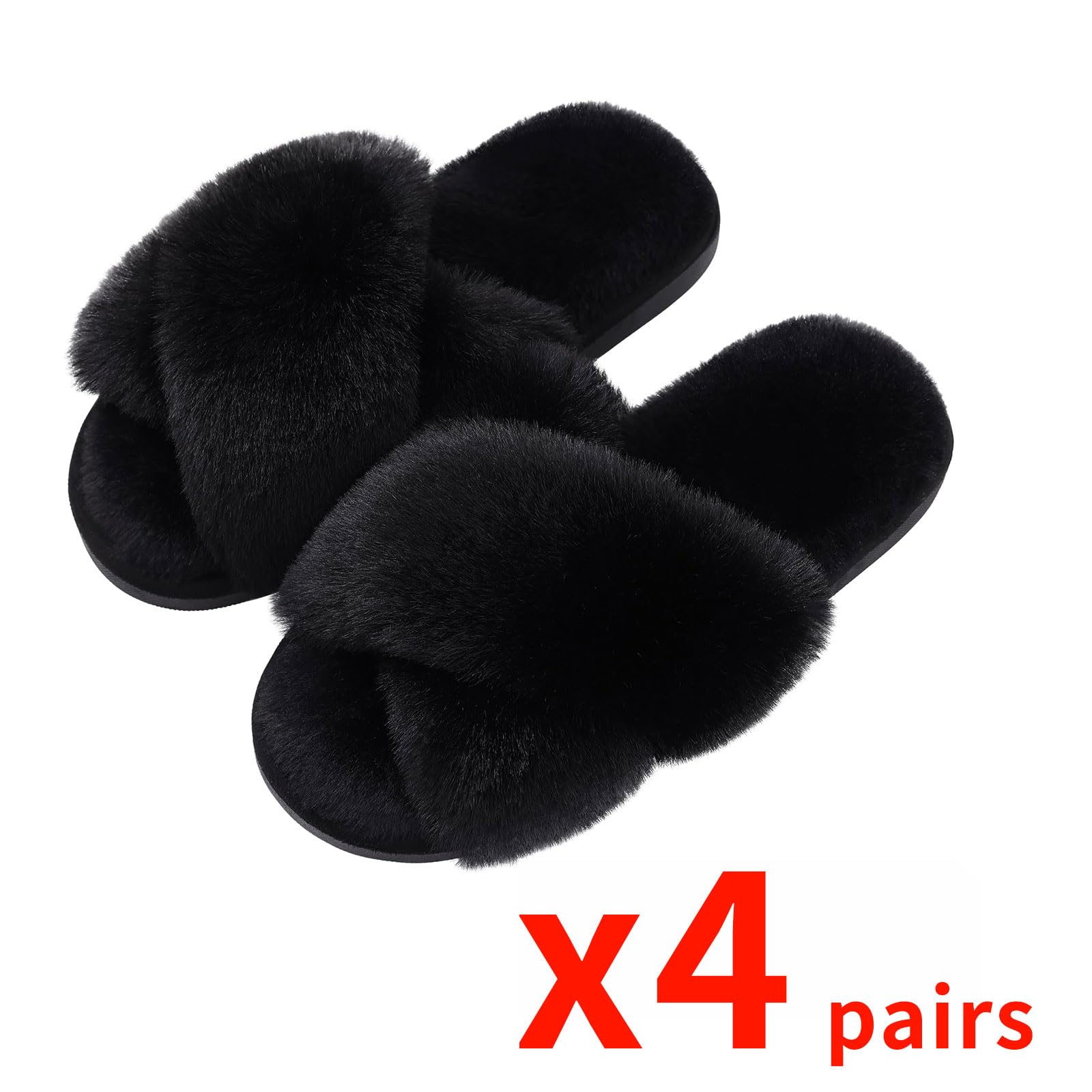 FUZZY HOUSE SLIPPERS: Fuzzy faux fur upper and footbed surround your foot in cloud comfort, making your feet cozy. A good choice for reducing muscle fatigue after a long day of work.