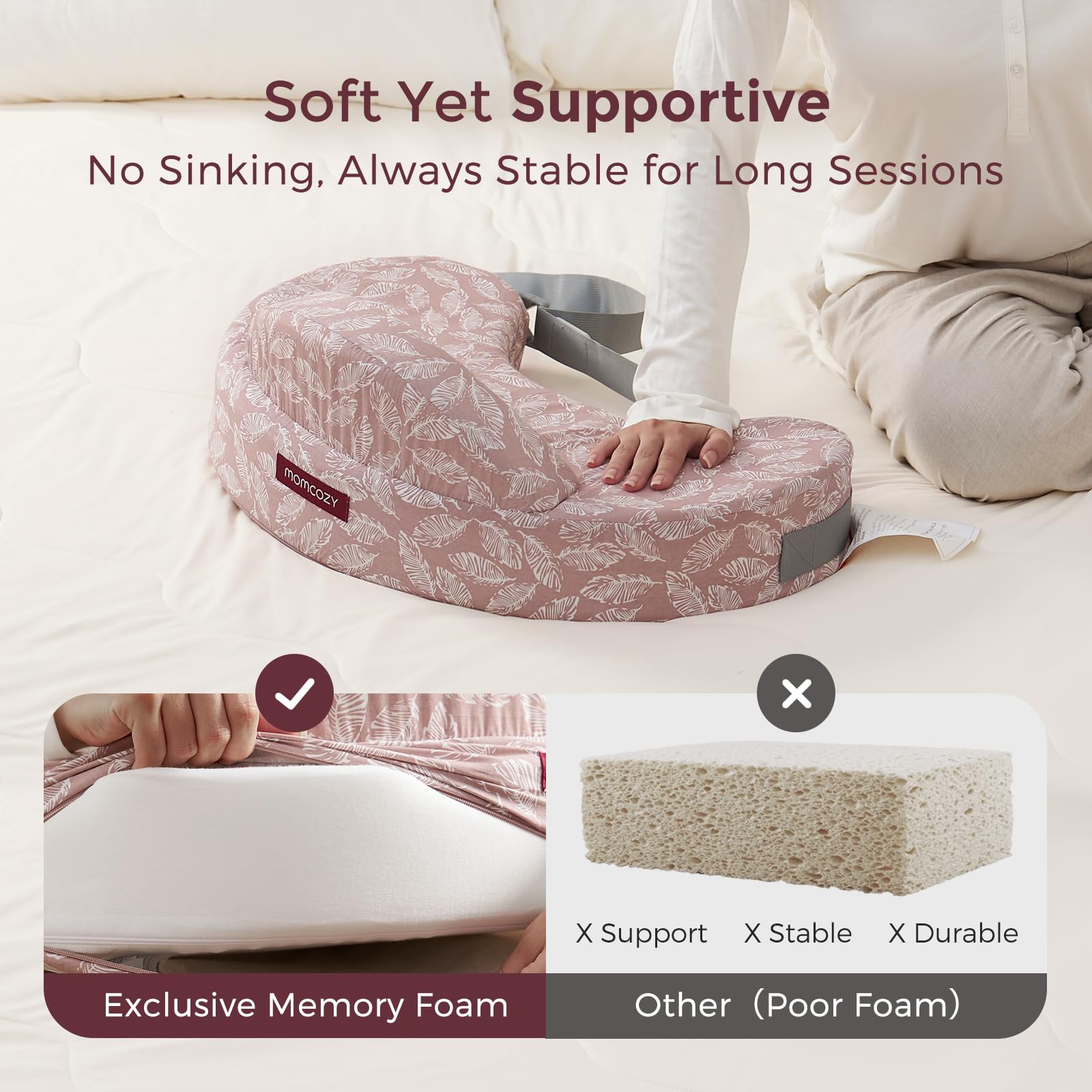 [Ergonomic Comfort and MaxSupport] Made of 100% safe memory foam. Different from other nursing pillows, the Momcozy original breastfeeding pillow is like a combination of "powerful hands"and "fluffy clouds", comfortably ergonomic supporting baby and mom's arm, maintaining at the ideal height and position for better latching. No more pain and sore arms, more confident and healthier nursing