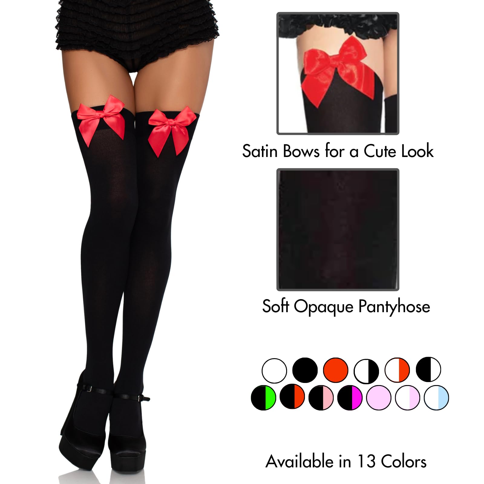Take basic stockings and add a flirty touch; These opaque thigh highs with satin bow are next level gorgeous.