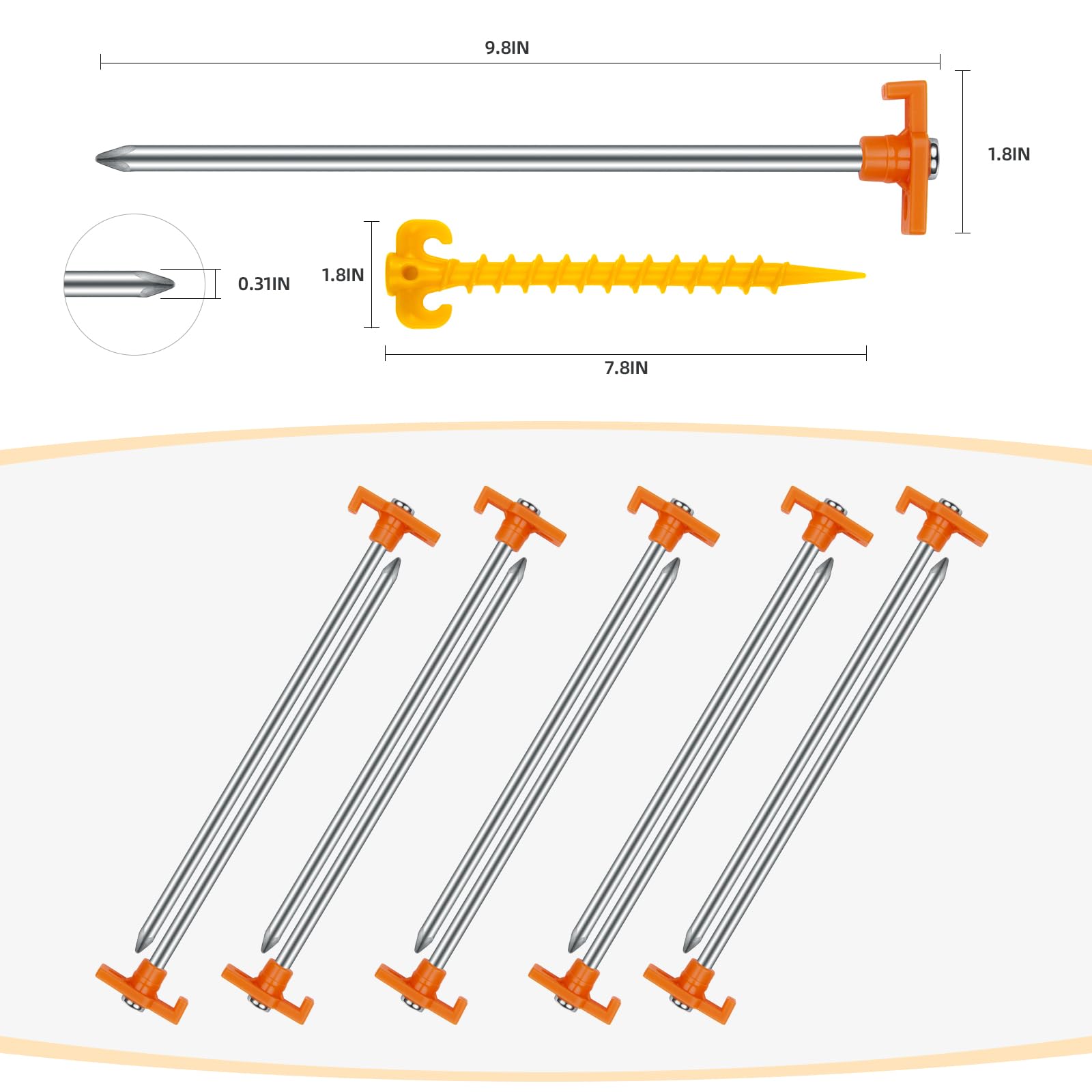 TO COPE WITH MORE NEEDS: If you do not want to carry a lot of heavy anchors, we also have a small number of options, this 10 in nail only 0.13LBS/PCS