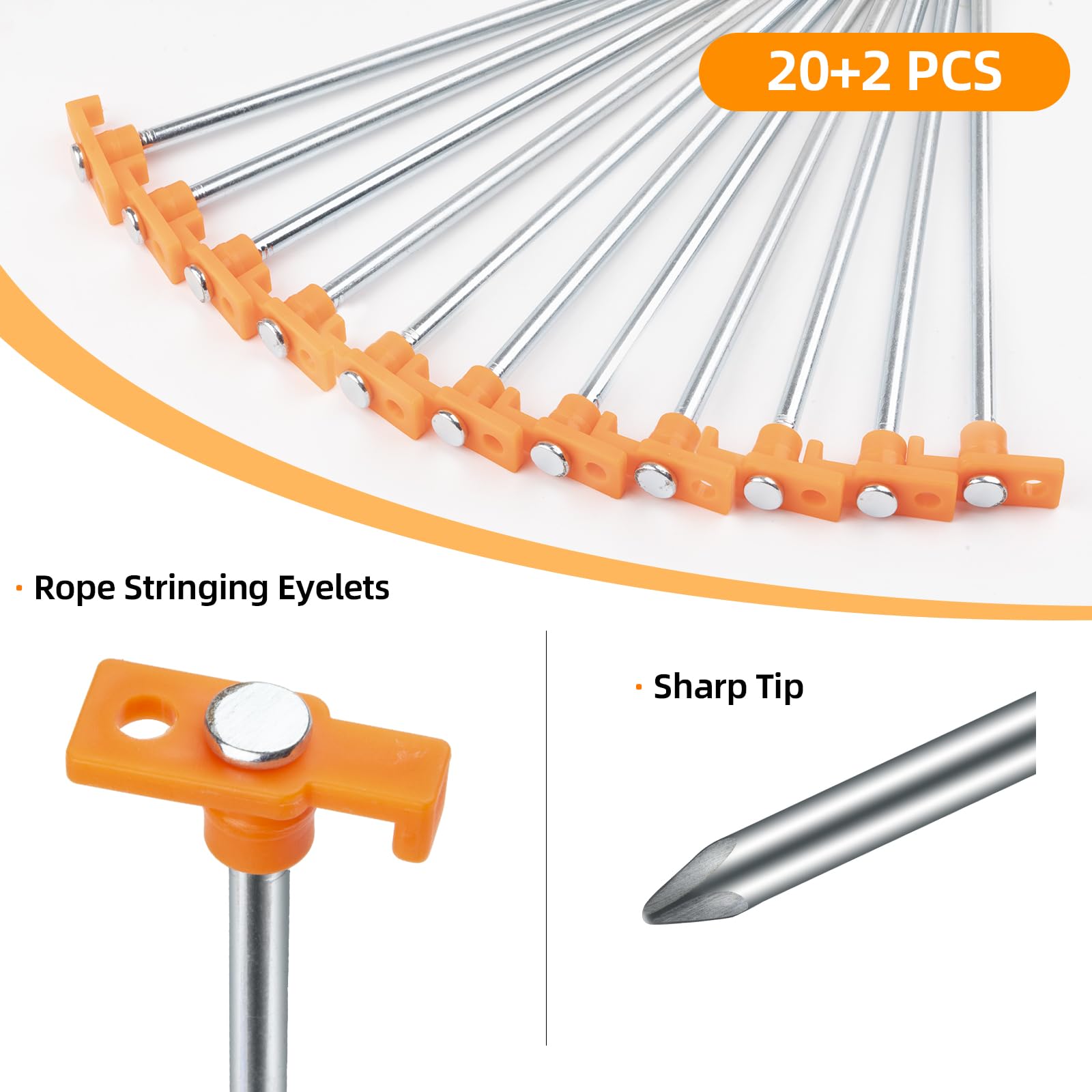 SUITABLE FOR MULTIPLE SCENARIOS: In addition to being used to secure tents, canopies, tarps, rope racks, fences, awnings, and beach umbrellas, the nails can also be used to secure your child’s trampoline, support fixed plants, and secure Christmas giant balloon