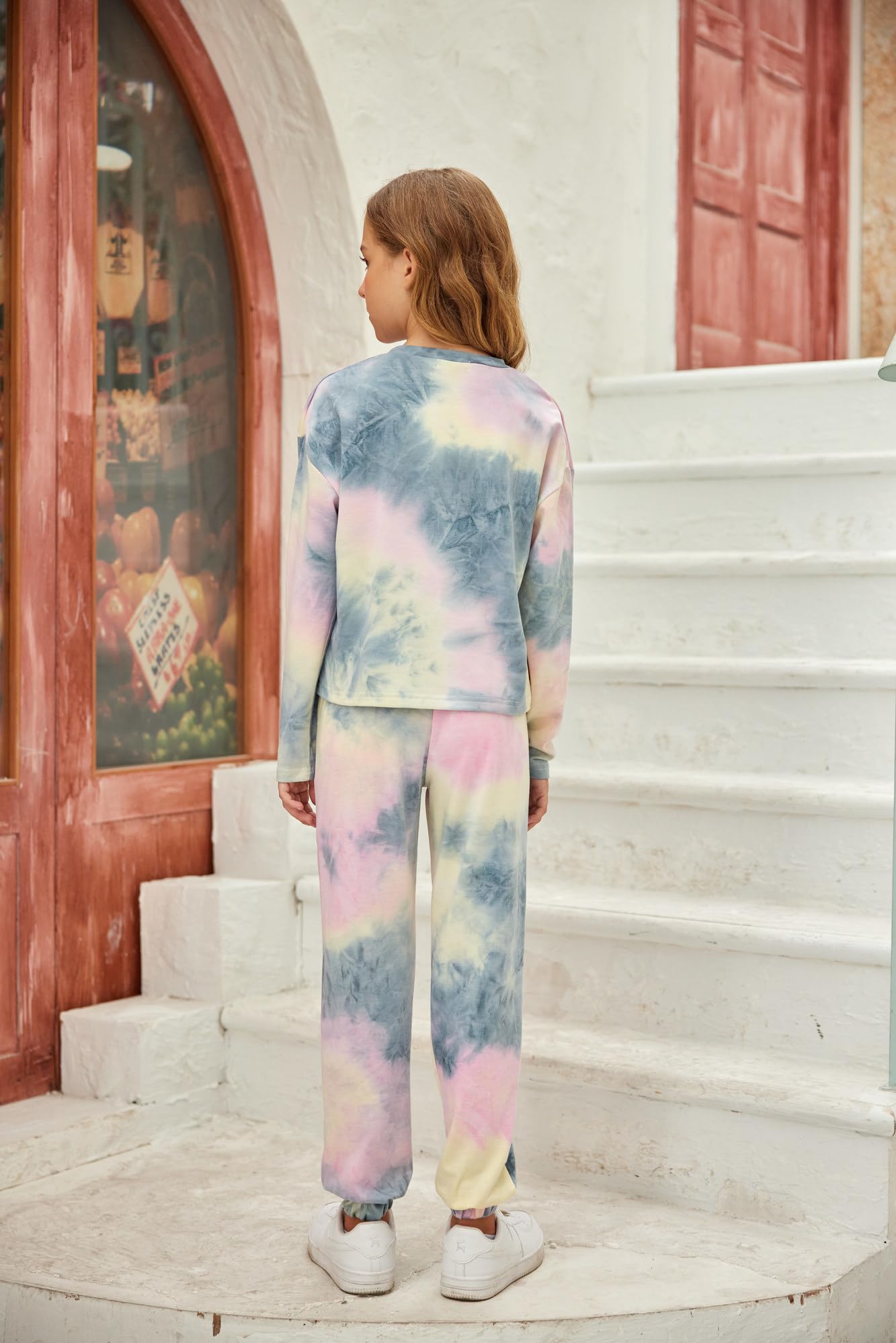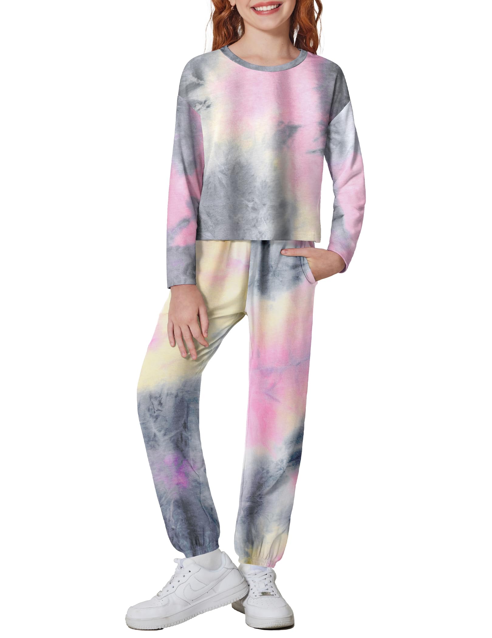 🎁Package included 1pc long-sleeved tie-dye crop tops for girls + 1pc tie-dye sweatpants. Hand wash or machine wash with cold water. DO NOT bleach.