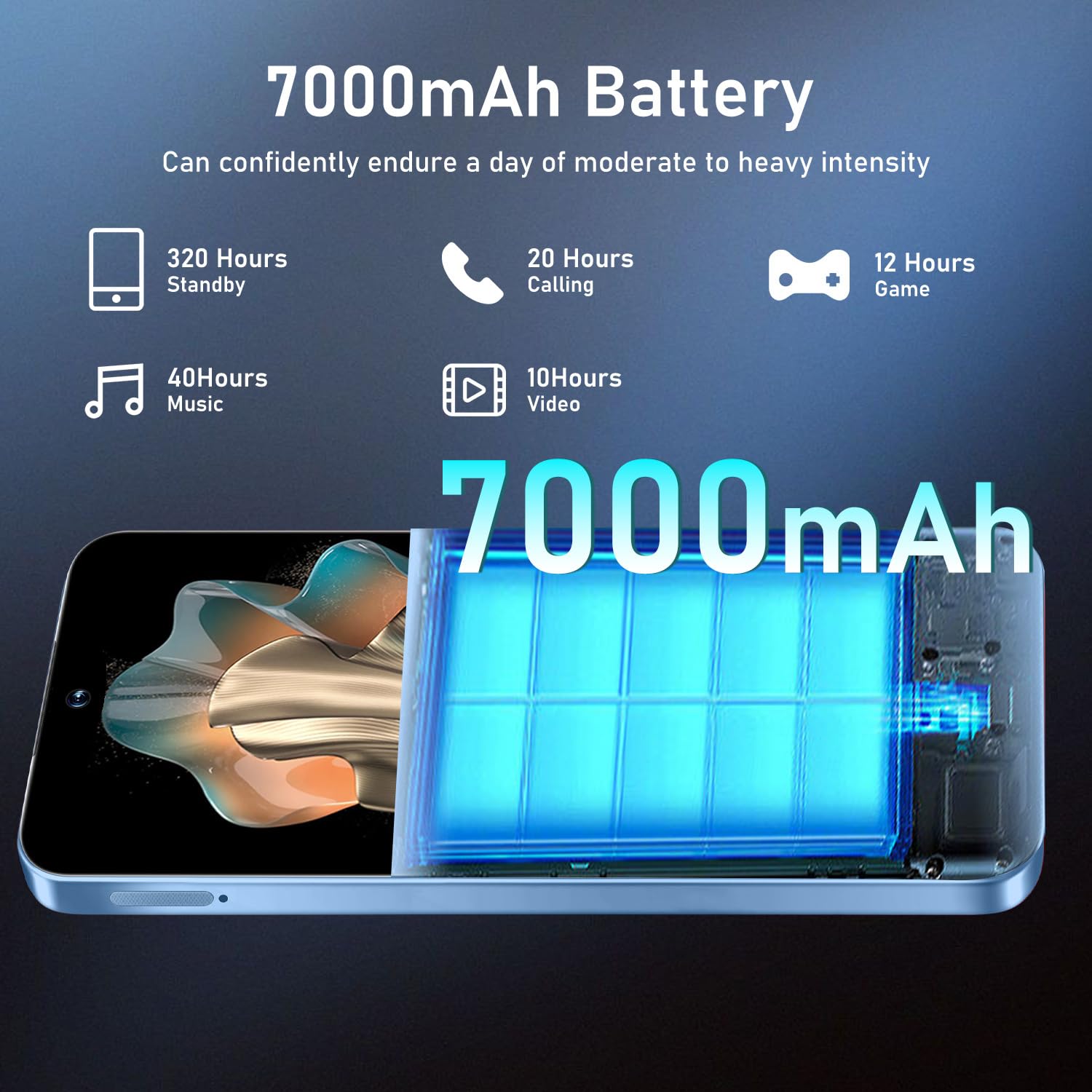📱【LONG LASTING BATTERY】. With the 7000mAh big battery and own battery saving technology, smartphone unlocked can confidently last a full day of medium-to-heavy use without charging. Equipped with 20W fast charging, it can charge quickly when you needed