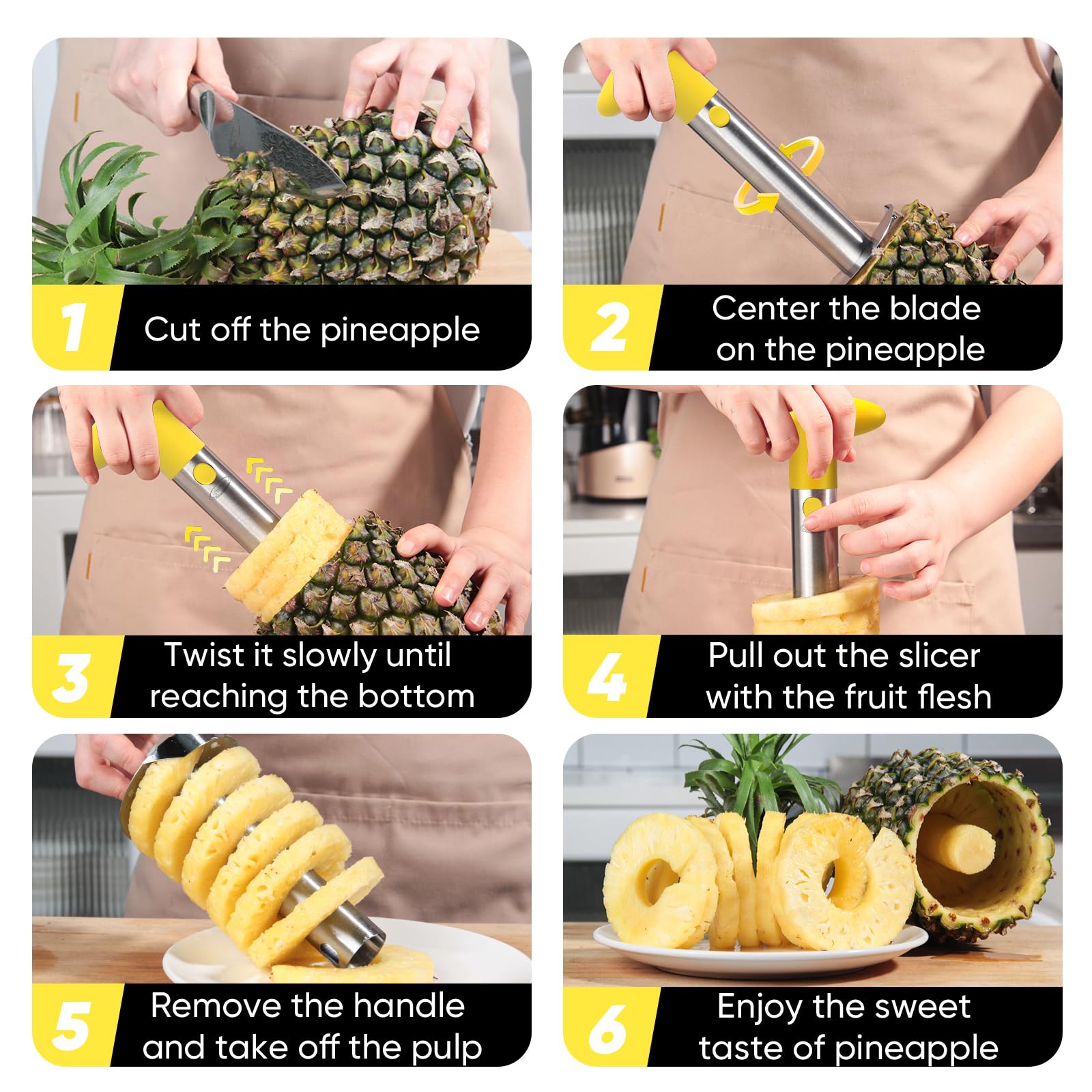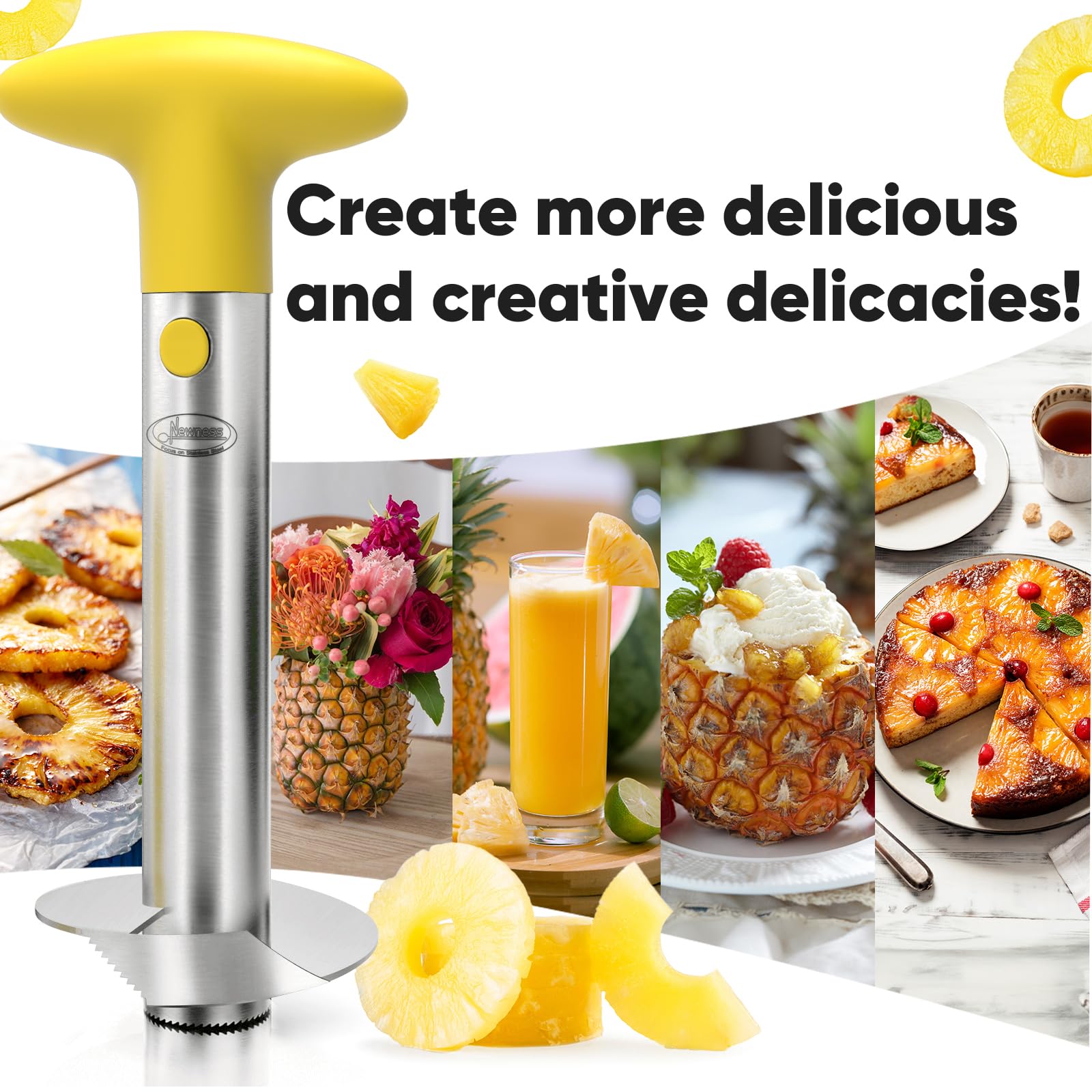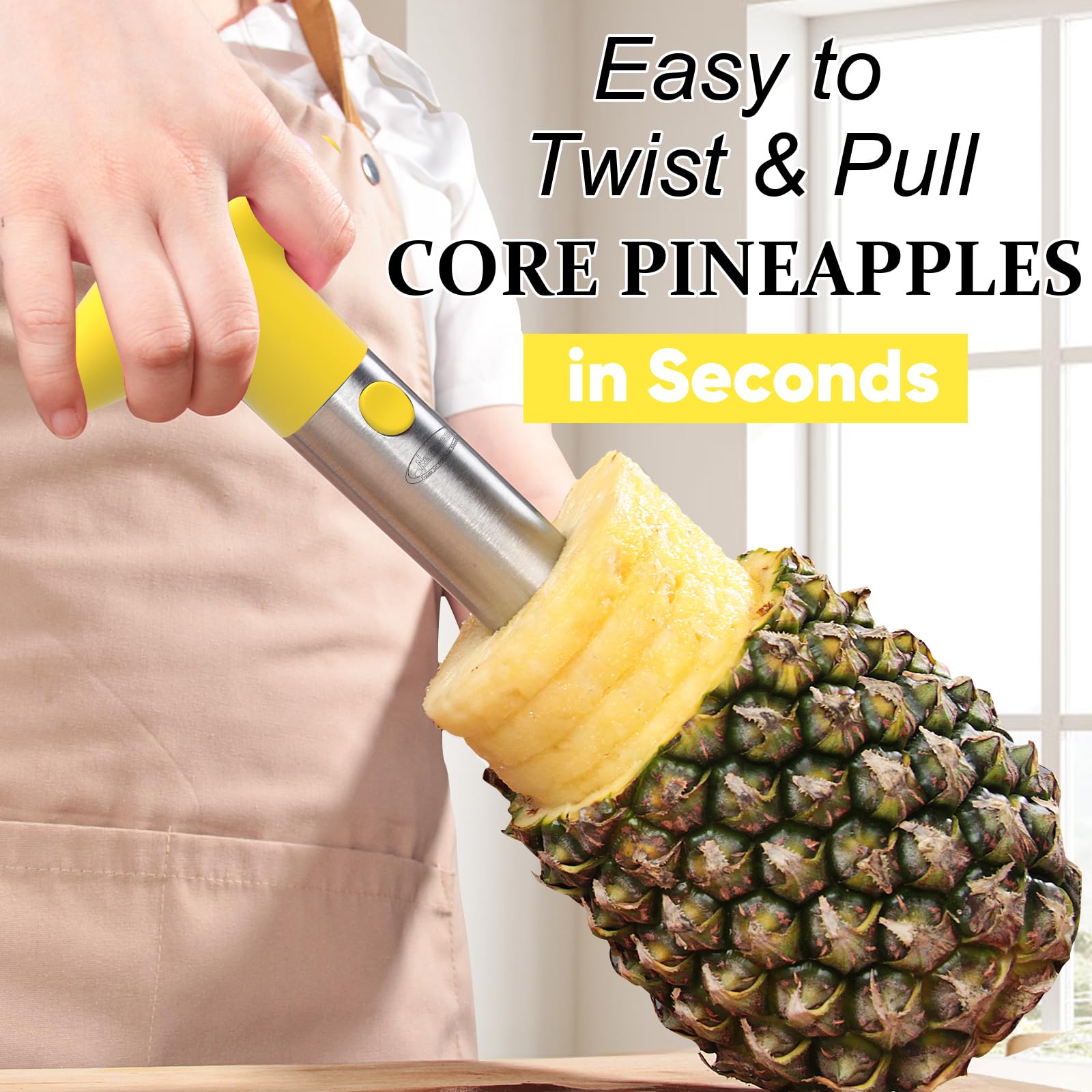 Easy to use, Peels, cores, and slices an entire pineapple in seconds.