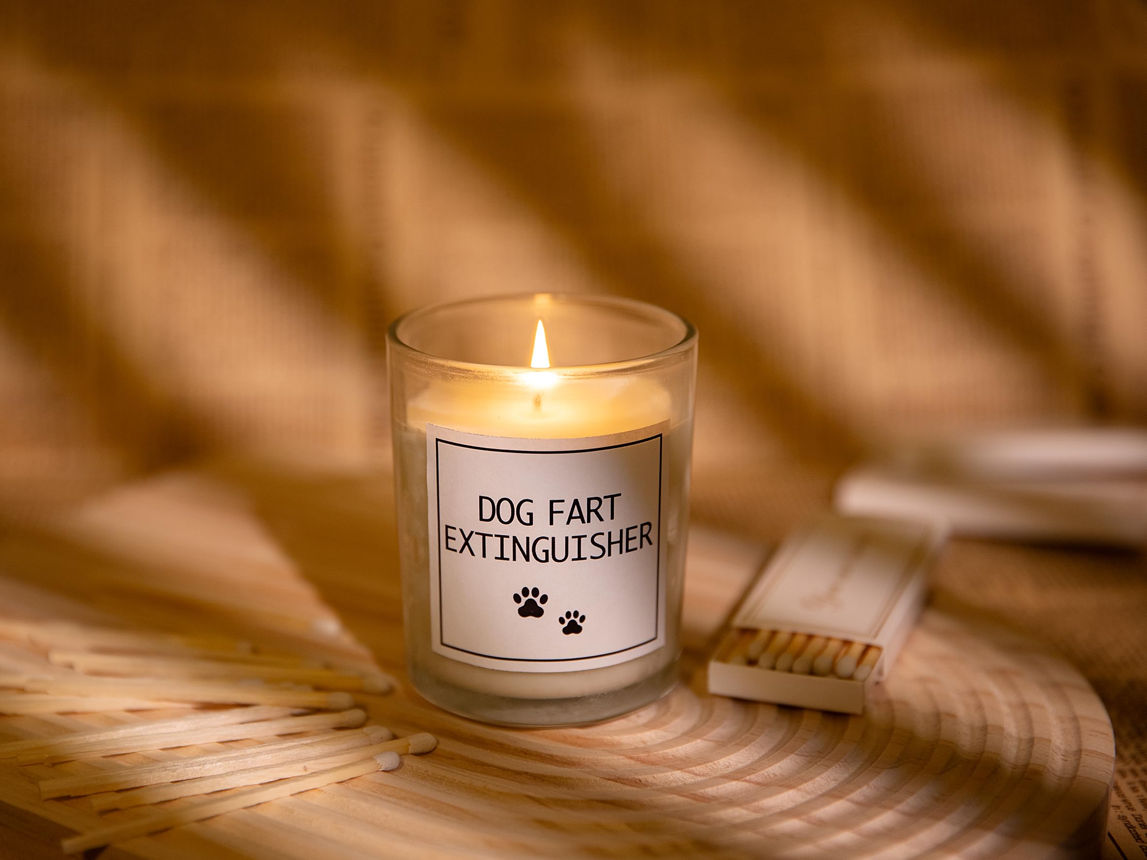Pet Odor Eliminator - Sorry, your baby farted, it's time to light this "Dog Fart Extinguisher"! Scented with a fresh lavender scent, this scented candle is not only a great decoration for all dog-owning homes, but also an equally useful deodorizer that you can place in your living room, dining room, bedroom, bathroom, kitchen or anywhere else.