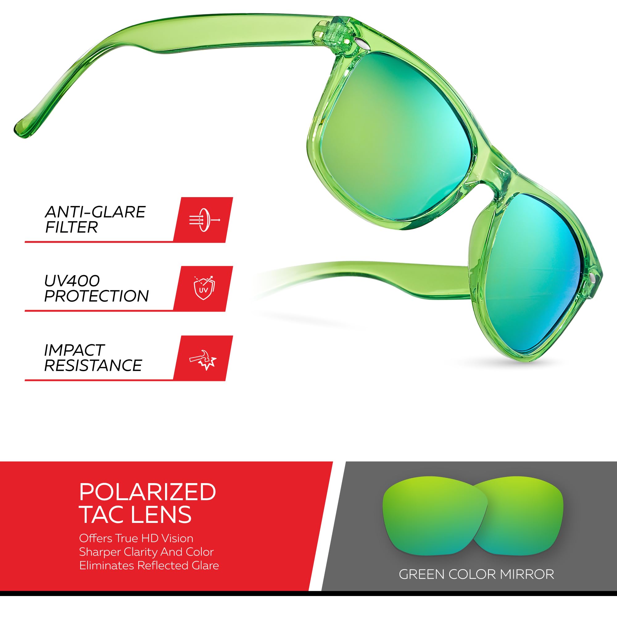 🕶️ 1.1MM TAC POLARIZED LENSES WITH UV400 PROTECTION: Keep your eyes safe from that annoying glare from shiny surfaces (e.g. pavement, snow or water) with our designer sunglasses for women and men, which feature polarized anti-glare lenses with UVA & UVB protection.